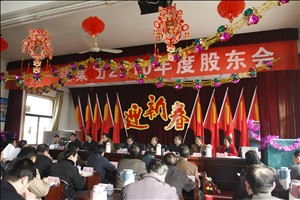 1月26下午,集团公司召开2010年度股东会会议。集团公司董事长王贵聪主持会议。会前,集团公司董事长王贵聪向34个单位负责人颁发授权委托书。副董事长宋双玉代表董事会作2010年度董事会工作报告;董事总会计师代表董事会作2010年财务会计决算和 2011年财务预算报告以及2010年利润分配的报告,全体股东对以上报告进行讨论审议,经全体股东讨论审议并举手表决一致通过上述报告,董事王斌分别宣读董事会工作报告、监事会工作报告,2010年财务决算,2011年财务预算报告,2010年度利润分配等决议,董事长王贵聪讲话:在过去一年中对董事会全体董事监事各位股东的信任和大力支持表示感谢!我坚信在大家的支持下,一定会努力工作,积极奋斗,为集团公司负责,为股东负责,尽管未来发展艰难,但一定要坚定信心,坚定信念,为实现三年发展规划而努力奋斗!