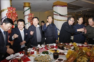 建设者龙腾虎跃,迎新春欢聚一堂。