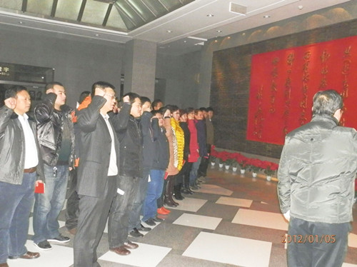 培训会结束后,2011年发展的15名新党员和2010年因工作等原因未履行入党宣誓的3名新党员,驱车前往中共太原支部旧址,面对鲜红的党旗举行了庄严的入党宣誓仪式。党委办公室领导向新党员颁发了党微、党章,赠送了《深入开展创先争优活动文件选编》。