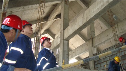 4月30日,集团公司高管层全体领导在董事长、总经理王贵聪率领下头戴安全帽,身着企业工装来到九分公司承建的汾东文体中心工地,对节日期间坚守岗位辛勤工作的全体作业人员、职工进行了看望和现场调研。进入现场后领导们直奔作业区,并步入正在施工的楼上对工程质量、安全防护措施、现场文明施工情况进行了细致检查,然后领导们又到生活区对作业人员的食宿情况进行了检查,王总经理与正在吃午饭的工人们进行了亲切交谈和情况调研。到办公区后,项目经理路立科和分公司经理张岐泰先后分别做了情况汇报,领导们听取汇报后,王总经理作了热情洋溢的重要讲话,首先,认为从施工现场建设到克服施工工艺的难度,体现了九分公司的实力和能力,并对九分公司的整体工作情况表示满意,同时提出了三点要求和希望:1、保持持续、健康、积极的发展态势,通过努力进一步增强实力,在经营的项目上要选择优良的、有形象代表性的项目,走自建项目发展的道路。2、抓住工程装修阶段的关键,一是施工标准不能降低,二是确保安全生产。3、坚持干、算结合,既要干好、也要算好。努力降低成本,提高效益,通过努力要干出九分公司的特色来。中午领导们与项目部管理人员、分公司领导及作业队负责人在项目部食堂共进午餐,对大家以示节日的祝贺和深切的慰问,极大的鼓舞了职工士气。