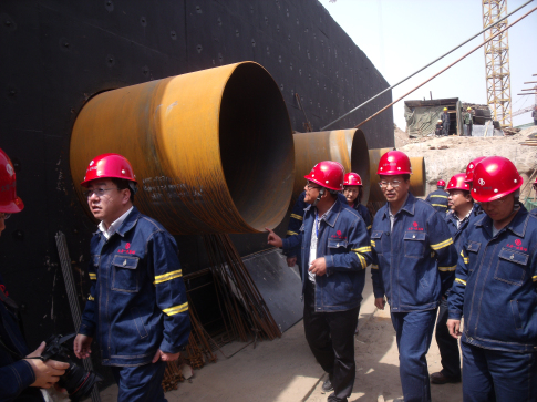 集团公司领导班子一行在分公司经理孙庆福、生产副经理薛军、副经理刘海飞陪同下,查看了施工现场、质量安全及工期进展情况,总经理助理李隆主持现场会,代表集团公司向节假日仍坚守岗位的施工现场全体员工表示慰问与节日的祝福。项目经理刘海飞从工程概况、施工中的难点重点亮点等方面作了汇报。分公司经理孙庆福作了补充汇报。听取汇报后,集团公司总经理王贵聪提出了要求与希望,一.重塑形象,首先肯定了二分公司这些年做出的成绩,对该项目的施工情况深表满意,要求提高思想认识,全面发展,希望在每个工程都能树立良好形象;二.要求安装单位在保安全、质量的情况下,促进度,与土建紧密配合,确保圆满完成任务。三.要求分公司承担集团公司的重要使命,积极推动BT工程的进展,求得突破,站在集团公司整体利益的角度考虑,为集团公司的发展奠定良好的基础。最后总经理助理李隆提出,二分公司逐步完善,自我监控,在创建上有所建树,当好集团公司的排头兵。