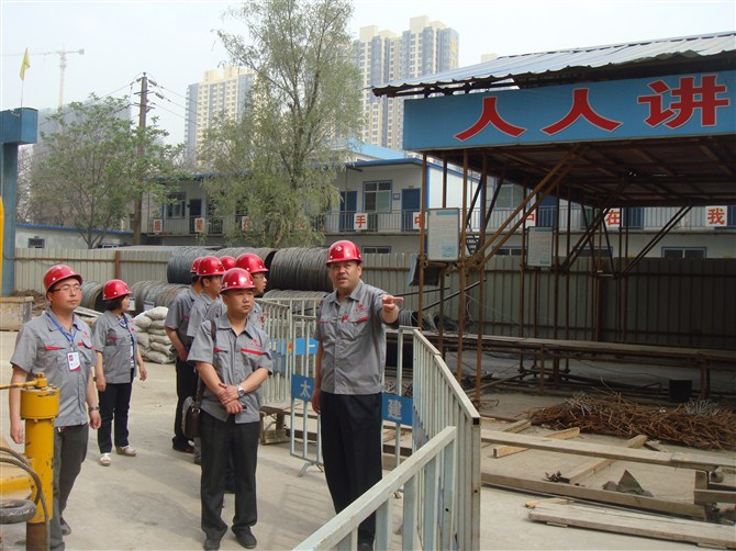 5月7日上午第十八工程处组织全体管理人员在处长朱连生、副处长冯凯的带领下到集团公司长风西大街保障性安居工程项目部进行参观学习。首先由赵仁和经理陪同参观了整个工程现场场区部署及机电安全防护设施。在会议室由赵经理详细介绍了该项目从中标开始进入施工阶段到处处展示企业文化、劳务管理及班子建设的全过程。用一家人的态度相互交流了各自在施工管理中的心得与体会。处长朱连生代表十八处全体人员对赵仁和经理及项目部全体人员的热情接待表示感谢,同时强调十八处今年要在施工管理及“双创”上打一个翻身仗,离开榜样的力量是不行的,要以此为榜样,无论是复工还是新开工的项目都要本着虚心学习,坚持高标准、严要求的原则去对待,为集团公司增光添彩。