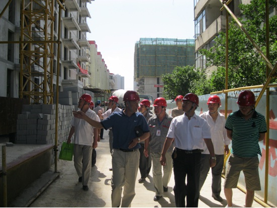 测评组随后对集团公司安全生产方面的5大项34小项进行了仔细、认真的检查,并深入到十三分公司施工的6904工厂商住楼项目、直属分公司施工的万柏林青少年活动中心项目进行了现场测评,十三分公司经理孟计根与直属分公司经理郭贵法代表基层单位迎接了检查。
