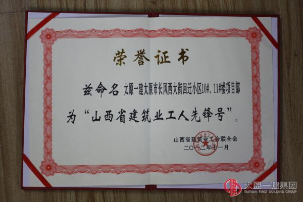 山西省建筑业工人先锋号之长风西大街回迁小区10#、11#楼项目部