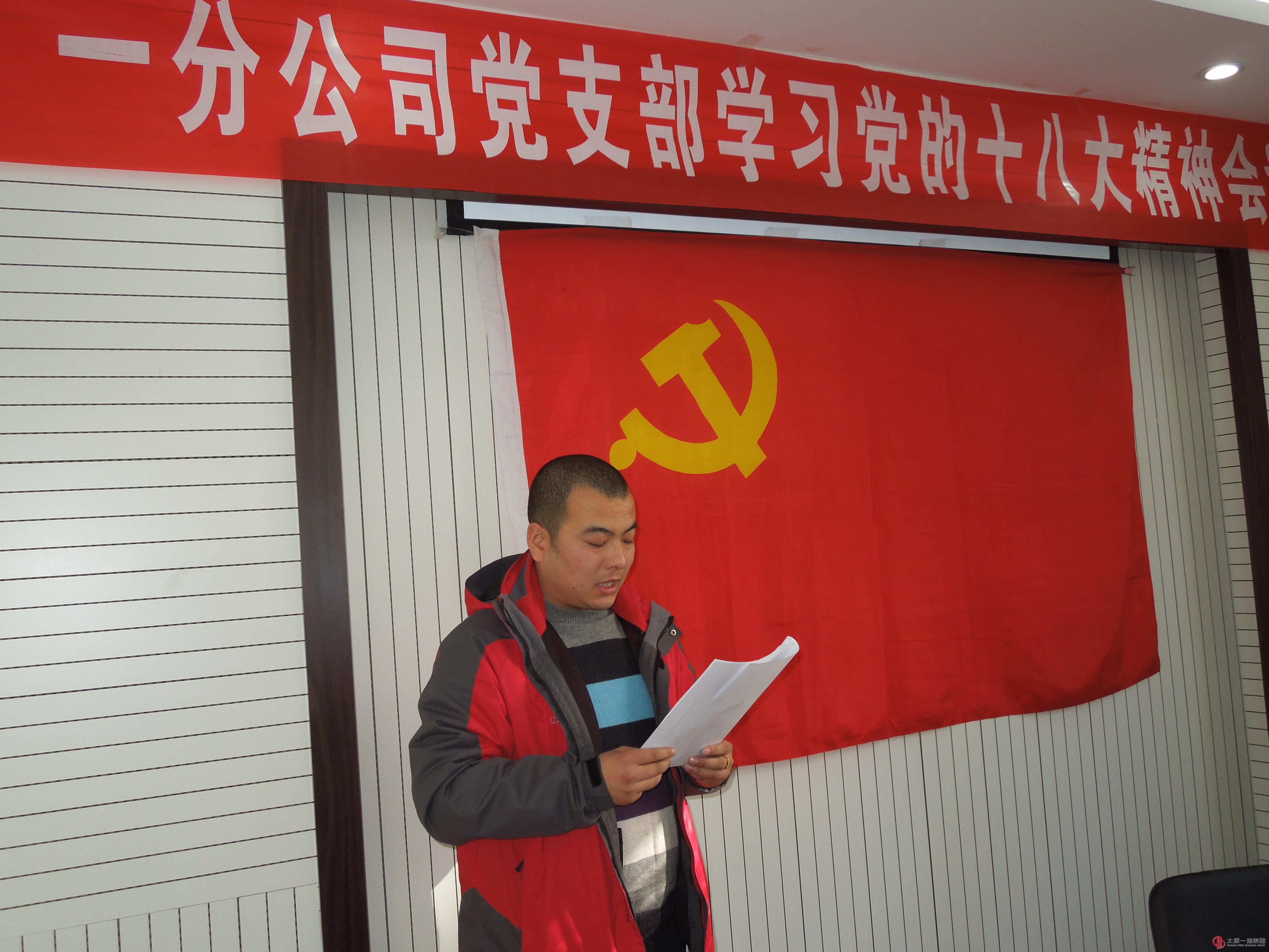 12月8日上午,一分公司召开生产周例会暨深入贯彻学习十八大精神会议。会上,一是副经理赵正传达了集团公司“12.5”生产会议精神;二是观看分公司本周各工地生产情况图片;三是主任经济师刘继峰传达了集团公司12月5日会议关于结算工作的要点以及分公司目前结算工作需要注意的问题;四是经理张玉喜强调目前工作需要注意的六个方面的要点;五是按照组织发展程序对预备期已满的杜晓维同志的入党转正事宜进行了讨论表决;六是共同学习了新《党章》。全体党员、项目经理参加会议,副经理党支部委员赵正主持会议。