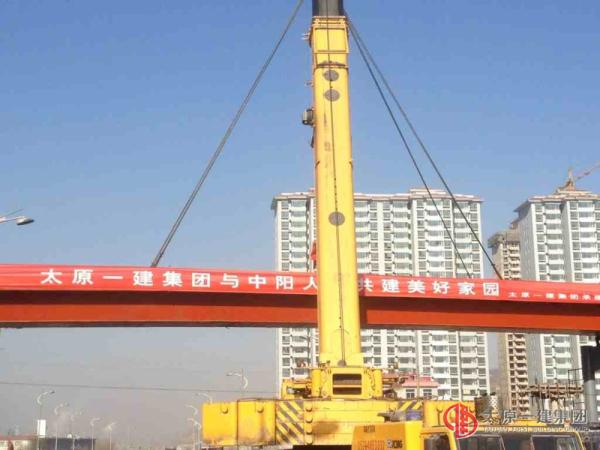 由太原一建集团吕梁分公司承建的中阳县340省道弓家湾钢结构人行过街天桥经过吕梁分公司上下各级员工共同努力于2012年12月10日吊装成功。