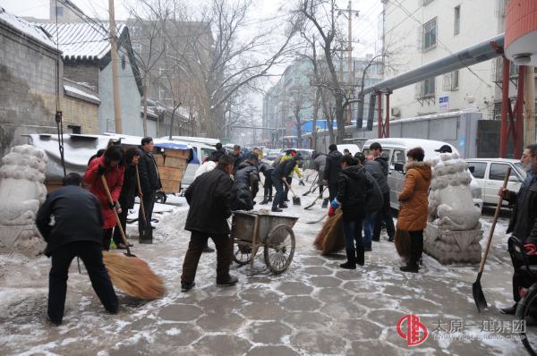 12月14日早晨,机关全体人员清扫机关大院及门前三包责任区内的积雪。