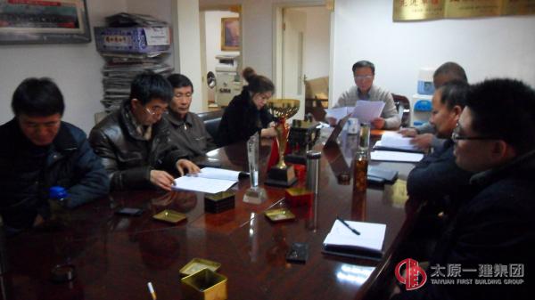 1月14日下午,十五分公司组织全体股东在分公司会议室召开太原一建集团2012年度股东大会预备会。本次会议应到股东9人,除1人回老家未到会委托其他股东,其余都按时到会。会议由分公司经理杨文生主持。会上分公司经理杨文生传达了 “1月12日”集团公司会议精神并详细讲解7个报告和通报了通过的《组织机构人员产生办法》、《授权委托实施细则》;出席会议的股东经过讨论一致举手表决,通过了各项报告决议的草案,对集团公司的董事会、监事会成员进行了投票选举。