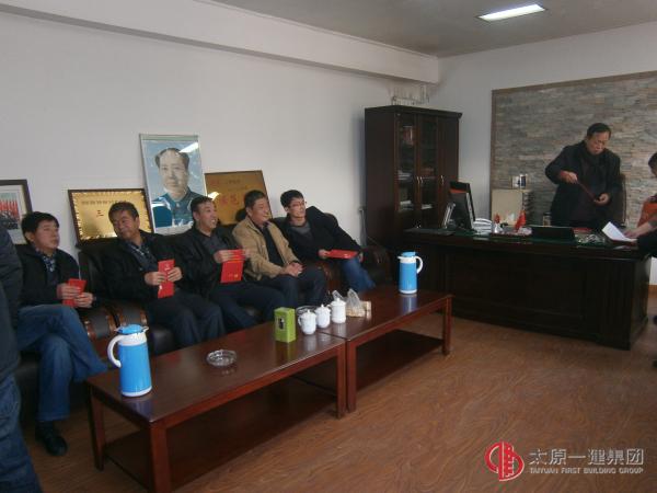 1月28日下午,二分公司召开全体职工会议。分公司全体人员参加,会议由经理孙庆福主持。首先,由分公司经理孙庆福传达学习了并一建发【2013】1号文件党委书记董事长王贵聪在“双代会”上的重要讲话,强调了在新的三年规划中,“四个发展”核心。其次,对项目部工作进行总结安排,要求项目部处理好年终工程结算问题,并为分公司19位股东发放了红利。