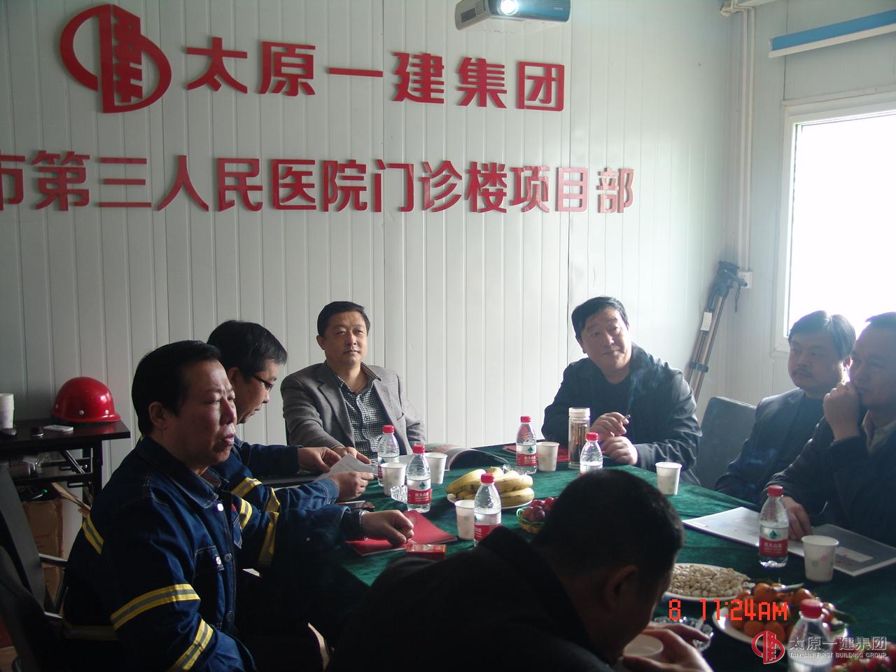 3月8日上午由中阳县建设局局长刘瑞带队一行23人莅临我集团公司施工现场考察调研,集团公司总工程师路志旭、工程管理部部长赵峰陪同考察。考察团分别对十三分公司6904项目、三分公司平阳景苑项目、直属分公司第三人民医院项目进行了施工现场观摩,并在第三人民医院项目部会议室听取了集团公司介绍,考察团一致认为集团公司管理扎实,安全质量管理有特色,对集团公司给予了充分的肯定与好评。本次考察调研取得了圆满成功,考察中十三分公司、三分公司、直属分公司项目部给予了大力配合,在此一并表示感谢!