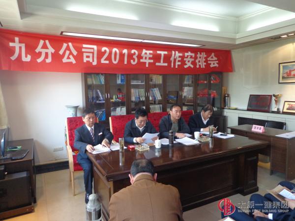 3月30日上午,九分公司召开二0一三年工作安排会。分公司领导成员和全体管理人员参加了会议,集团公司董事长、党委书记、总经理王贵聪,副总经理李伟,总经理办公室主任任秀山出席了会议。会议进行的主要议程是:①传达了集团公司3月3日召开的2013年企业工作会暨生产安全起步动员会精神;②通报了分公司2013年机构设置及领导成员职责分工;③分公司经理张岐泰做了2013年分公司工作安排;④分公司经理分别与本单位汾东文体中心项目部、怡然易居项目部、山西交通学校项目部、安装项目部经理签订了“项目管理目标责任书”和“安全责任书”;项目经理代表杨伟进行了表态发言。