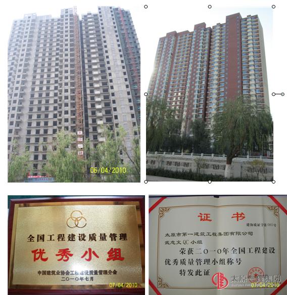 在集团公司第一个三年发展规划期间,主要参与建设的工程项目为山西省财政税务专科学校高层住宅楼,在该项目施工期间曾获得过全国QC成果优秀奖,2011年度获得省级工法,全国QC成果二等奖,省级QC一等奖,市级QC一等奖,2012年度获得新技术应用示范工程荣誉等,是这三年间无论从产值、利润还是荣誉上,都质量较高的工程项目。
