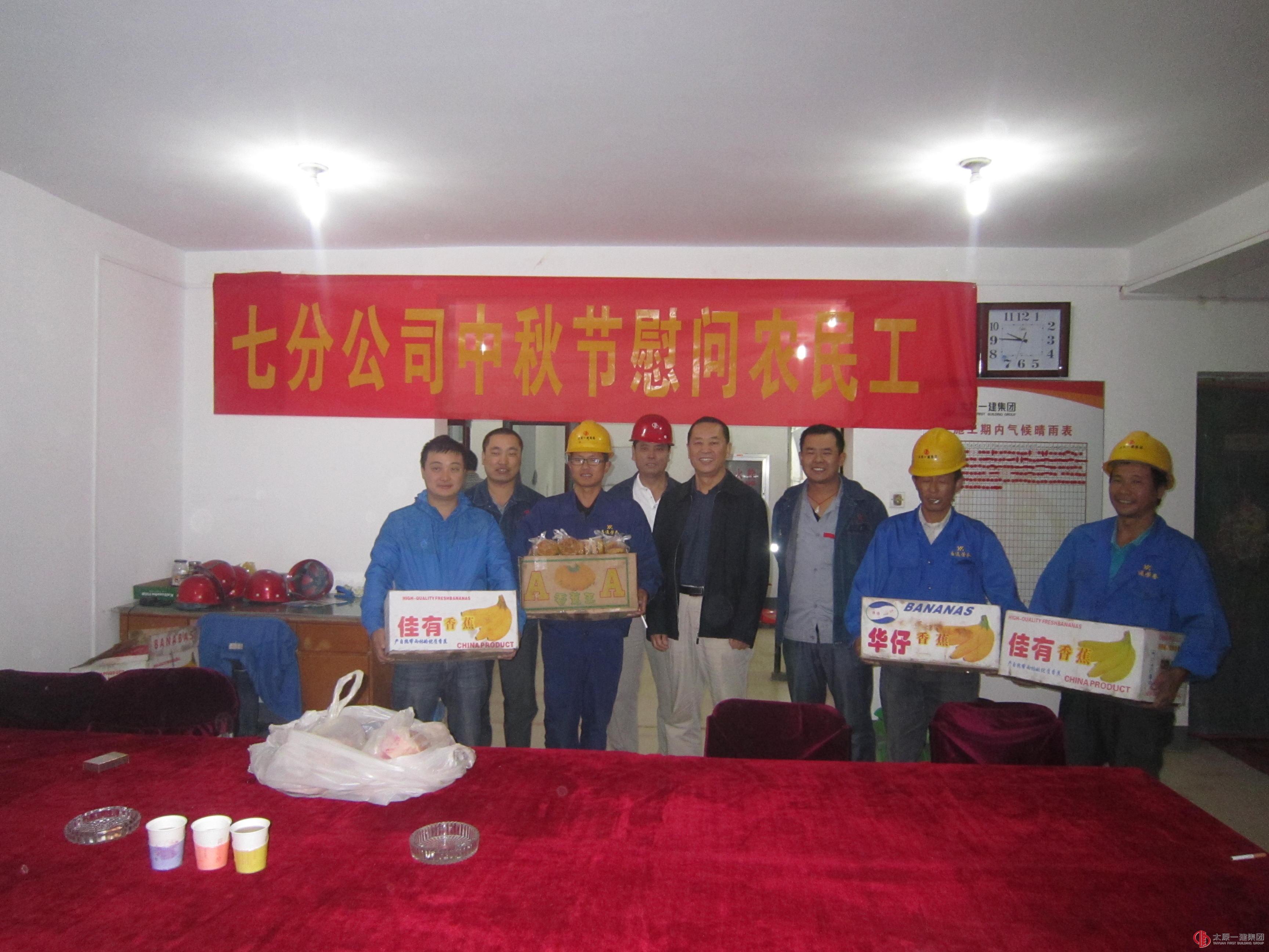分公司经理郭建新先后来到财专和山机工地,对项目管理人员、农民工在中秋节不能回家,仍然奋斗在第一线的人员表示最衷心的慰问,祝愿他们在这里能够过一个好的中秋节,保持健康的体魄,良好的心态。他强调,在“两节”来临之际,全体人员要认真做好安全生产工作,平稳过渡“两节”,保证年度施工任务。