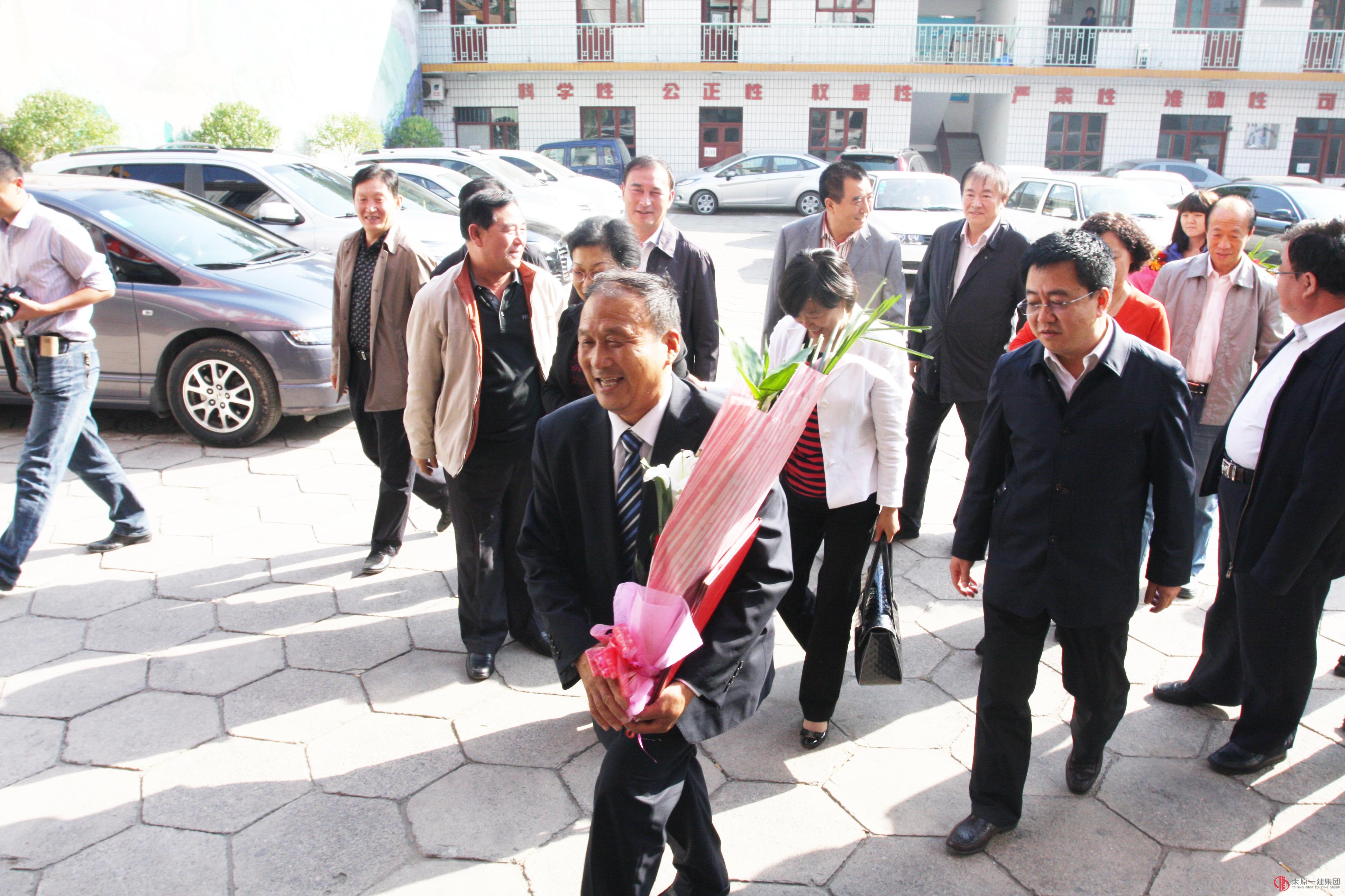 27日下午,集团公司彩旗飘飘,集团公司董事长、党委书记王贵聪,副董事长、党委副书记宋双玉等公司领导在公司大院,隆重迎接刚参加完全国第四届道德模范颁奖活动的我公司退休职工鲁际明载誉归来。