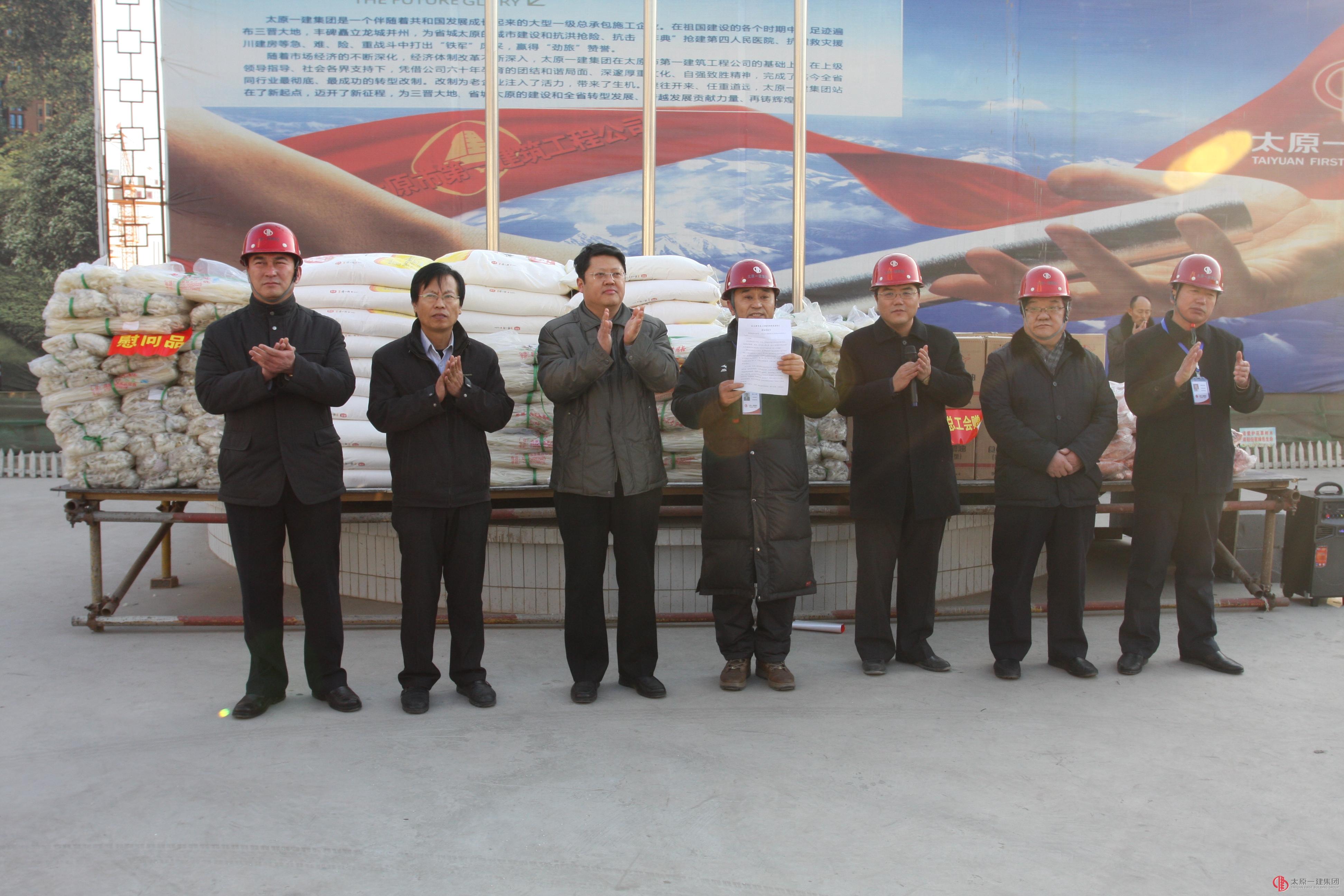 1月9日下午,太原市总工会常务副主席李永强、市总权益保障部的领导,冒着严寒,轻车简行,带着白面、油、粉条等慰问品,来到由集团公司第二项目工程管理处承建的中海“怡然家园”项目部,亲切慰问在严寒冬季施工的广大农民工兄弟。仪式上,项目负责人赵人和介绍了工程概况,并代表大家对市总领导的慰问表示了感谢。李永强副主席在讲话中对来自五湖四海的广大农民工兄弟为建设太原付出的辛勤努力表达了敬意,并向大家致以了新春祝福。慰问仪式简单热烈,体现了节俭朴素的新风尚。仪式由集团公司工会主席李瑞琪主持。集团公司董事王斌、副总经理李伟,中海房地产开发公司怡然家园项目总指挥韩双和参加了慰问活动。