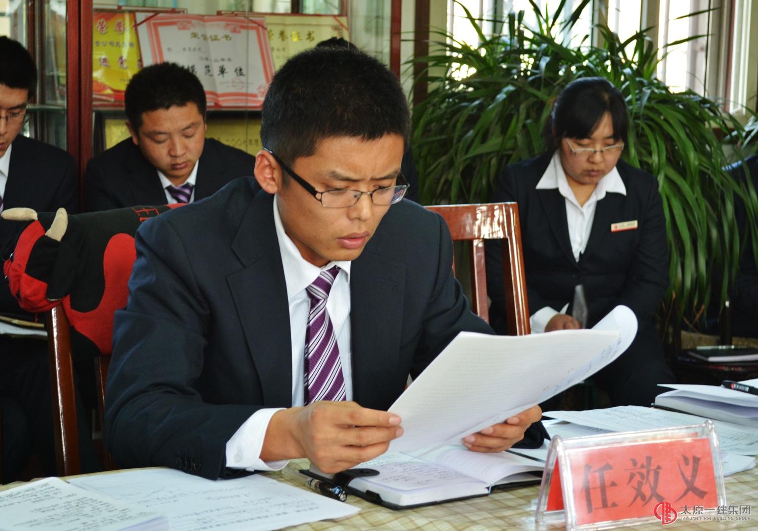 八、穆永茂宣读集团公司《二〇一四年质量管理工作安排》;九、生产经营科长商小民宣读集团公司《关于对二〇一三年成绩突出的单位和个人的表彰决定》。集团公司副总经理、经营公司经理李世雄对获得优秀员工的员工进行颁奖;