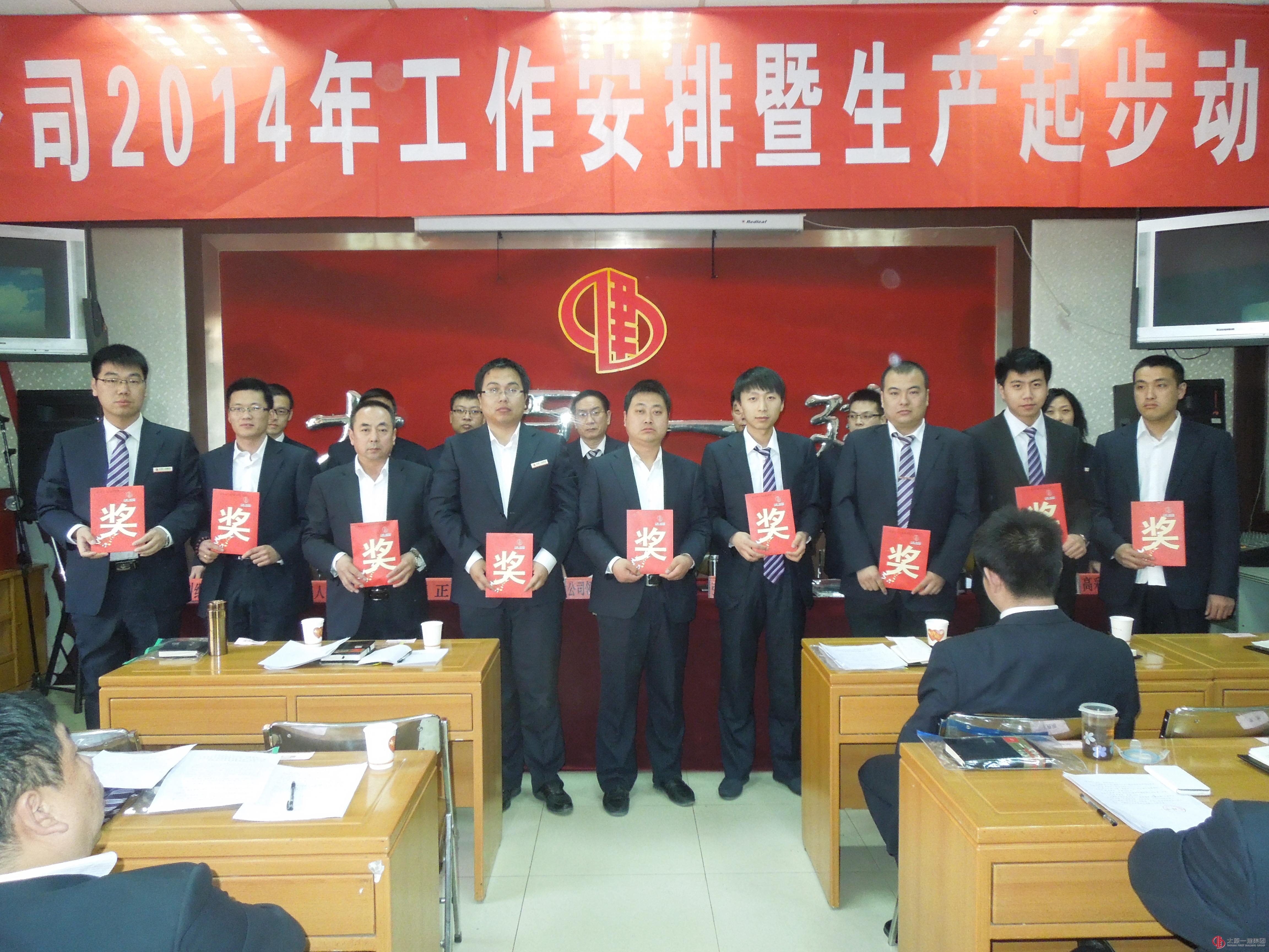 2014年3月19日下午,一分公司召开2014年度工作安排暨生产起步动员会,分公司全体管理人员参加会议,集团公司总会计师分管领导赵晨辉参加会议,工会主席高彩英主持会议。会议主要内容:一是经理张玉喜做2014年工作安排;二是副经理赵正对2013年安全责任书考核情况进行通报;三是赵正做了“落实责任,严格管理,奋力实现2014年各项任务”的生产起步动员讲话;四是主任会计师师赵人瑞宣读2013年度荣获山西省安全文明标准化工地、企业优良工程、企业安全文明标准化合格工地、省级工法、市级QC成果奖表彰的决定;五是分公司经理与各部门负责人签订2014年安全目标责任书和创优指令书;六是施工技术科科长任晓云通报分公司业务培训情况;七是集团公司赵总做指导讲话:首先对一分公司的工作给予充分肯定,其次就如何打造优秀团队提出三点建设性意见:1、打开金融渠道,勇闯市场,运作项目。2、优化项目管理模式,尝试项目信息化管理。3、找准标杆,制定长期发展目标。做大做强分公司。最后,高彩英就如何贯彻落实好会议精神提出具体要求。