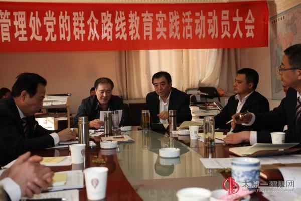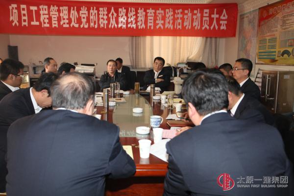 2014年4月5日下午三点,项目工程管理处召开了党的群众路线教育实践活动动员大会,会议由集团公司督导组领导张歧泰、陈斌、祁宇柱,项管处领导班子成员、团支部书记、各项目负责人、全体党员、入党积极分子30余人参加。会议由党支部副书记李宝林主持。