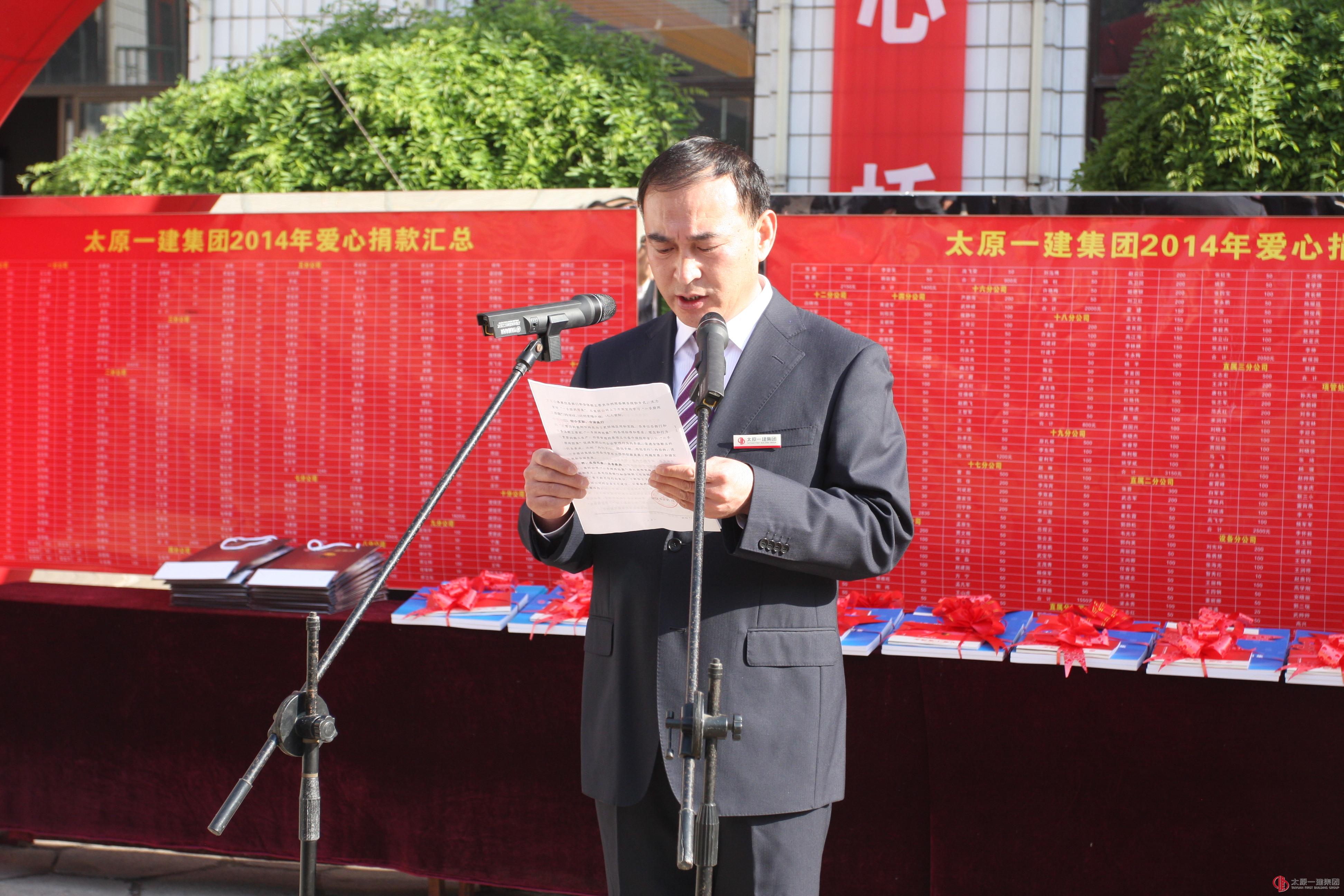 整个活动分四个部分进行,一是升旗仪式,上午7时30分,升旗仪式开始,400余名参加活动人员穿着整齐统一的厂服,唱着雄壮有力的《国歌》,目视着鲜艳的五星红旗徐徐升起。二是集团公司《企业文化手册》《建筑施工安全标准图集》《建筑文明施工标准图集》(简称一册两图)颁发仪式。工会主席李瑞琪、总经理助理陈斌分别就《一册两图》的形成及颁发的目的、意义等作了讲解和阐述。副总经理李伟宣读了公司发布《一册两图》的通知。要求各单位要认真组织《一册两图》的学习宣传,做到家喻户晓、人人皆知;要结合实际,将企业文化和标准图集,内化于心,固化于制、外化于行。颁发仪式上,董事长王贵聪分四批向所属40 余个单位颁发了《一册两图》,索攀杰代表全体职工就学习贯彻《一册两图》作了表态发言,副董事长宋双玉作了专题讲话。三是爱心捐款,《一册两图》颁发仪式结束后,参加活动的人员依序来到捐款箱前捐款。本次活动公募集善款54.6364万元,其中集团公司划拨20万元,经营公司、一分公司、二分公司、三分公司、四分公司、七分公司、九分公司、十分公司、十三分公司、十九分公司、直属二分公司、直属三分公司、项管处、项管二处、广东分公司、装饰设计分公司、西山分公司、建盛实业分公司、易通劳务公司19个基层单位以集体名义捐款146900元; 全公司1048名职工捐款199464元。个人捐款中,吕梁分公司经理李泽平以个人捐款50000元名列榜首。四是图片展览。配合企业文化手册的颁布和党的群众路线教育实践活动,集团公司在活动现场举办了反映企业60多年发展历史的老照片展览和“反四风”漫画展,捐款活动后,参加活动的人员共同参观了图片展览