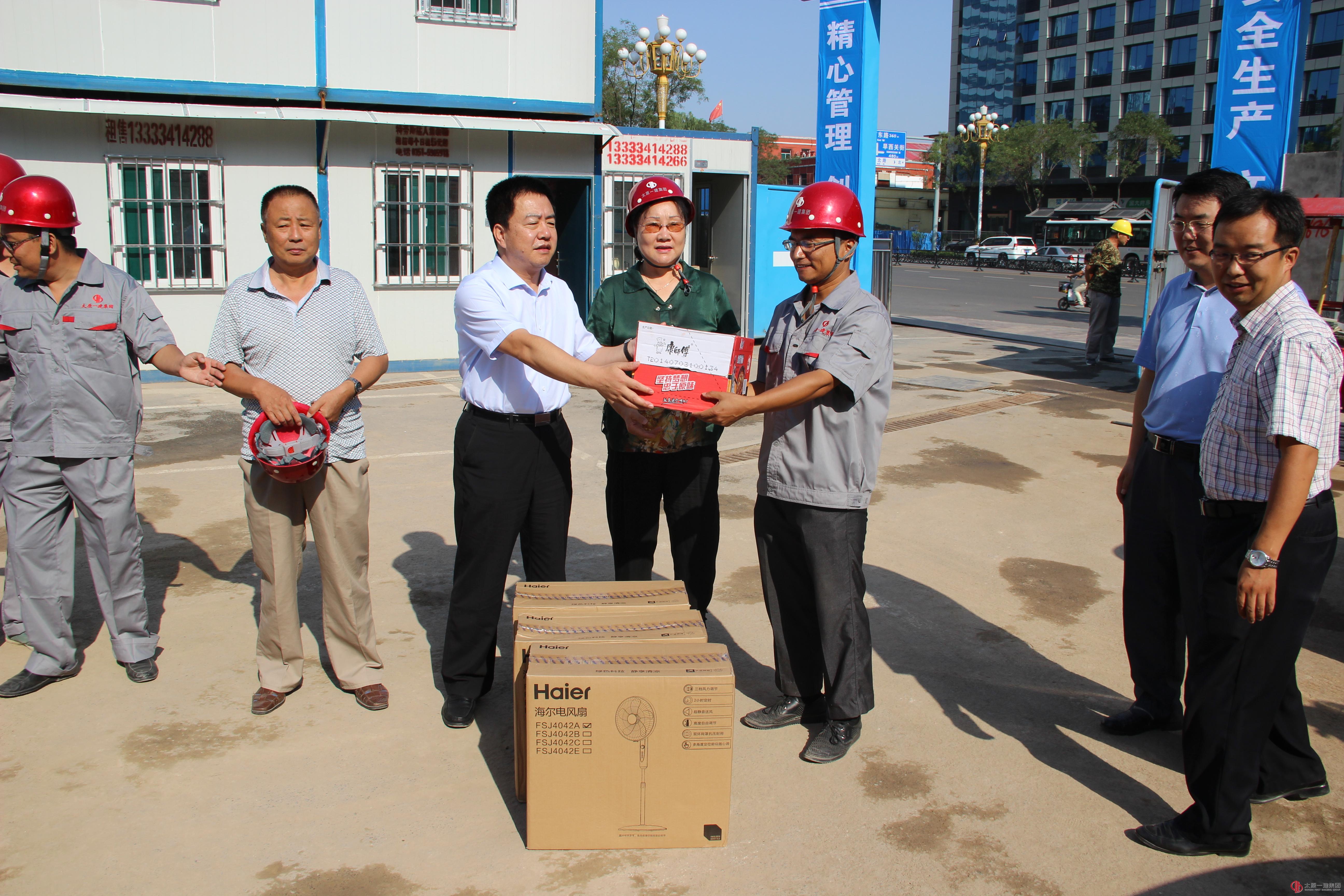 七月酷暑盛夏,正是施工生产的黄金季节。在这骄阳如火的日子里,集团公司非常关心牵挂施工一线正在挥汗大干的广大职工,召开了对施工一线夏送清凉专题会议,决定由集团公司总经理王贵聪亲自带队,兵分五路于7月24—25日对23个施工现场进行了“送清凉 鼓干劲 提信心 增斗志”慰问活动。