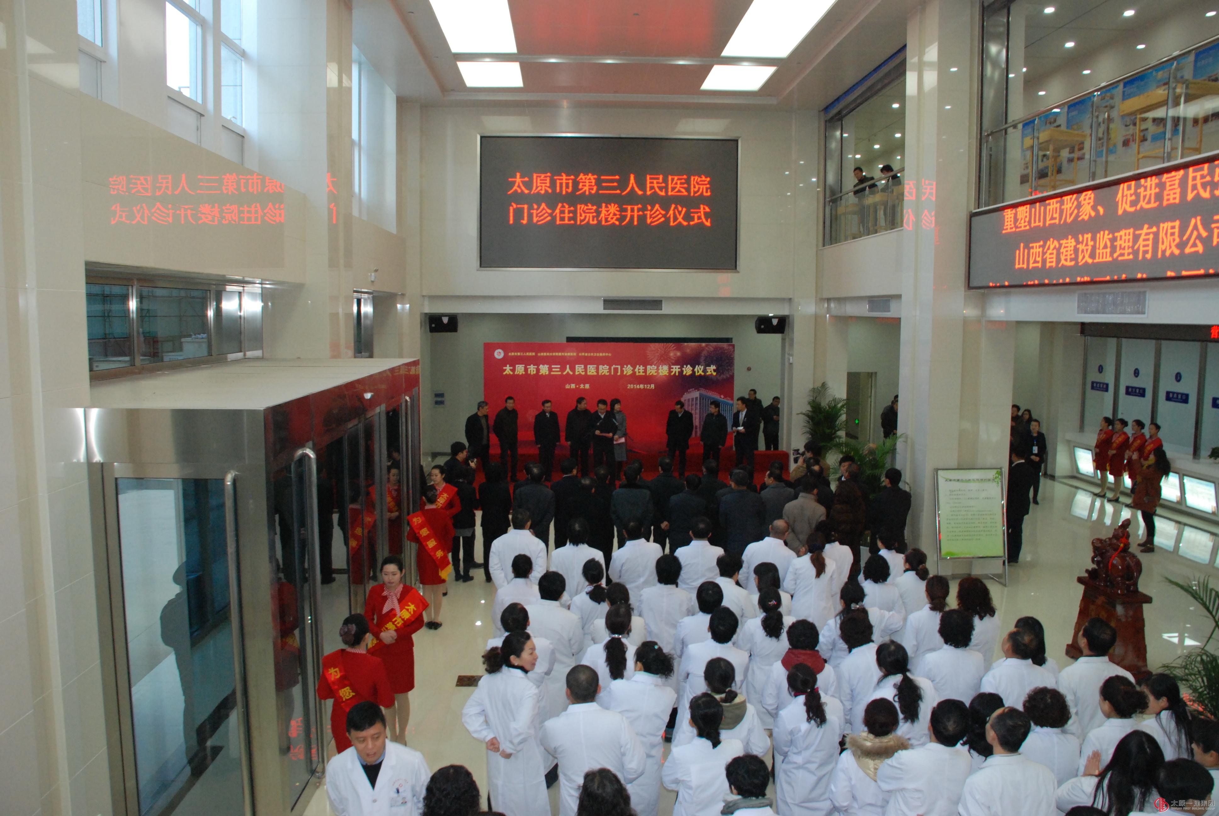 太原一建集团直属分公司承建的太原市第三人民医院门诊楼项目,于2014年12月21日举行开诊仪式。太原市副市长王爱琴、太原市卫生局局长郝宝清应邀参加开诊仪式。第三人民医院门诊楼项目部全体员工以及第三人民医院全体职工、代建单位项目管理人员、监理单位项目管理人员、集团公司副董事长宋双玉、直属分公司经理郭贵法参加本次仪式;太原电视台、太原广播电台、太原晚报、太原日报等多家媒体对门诊楼开诊仪式进行宣传报道。第三人民医院院长李玉杰主持仪式。