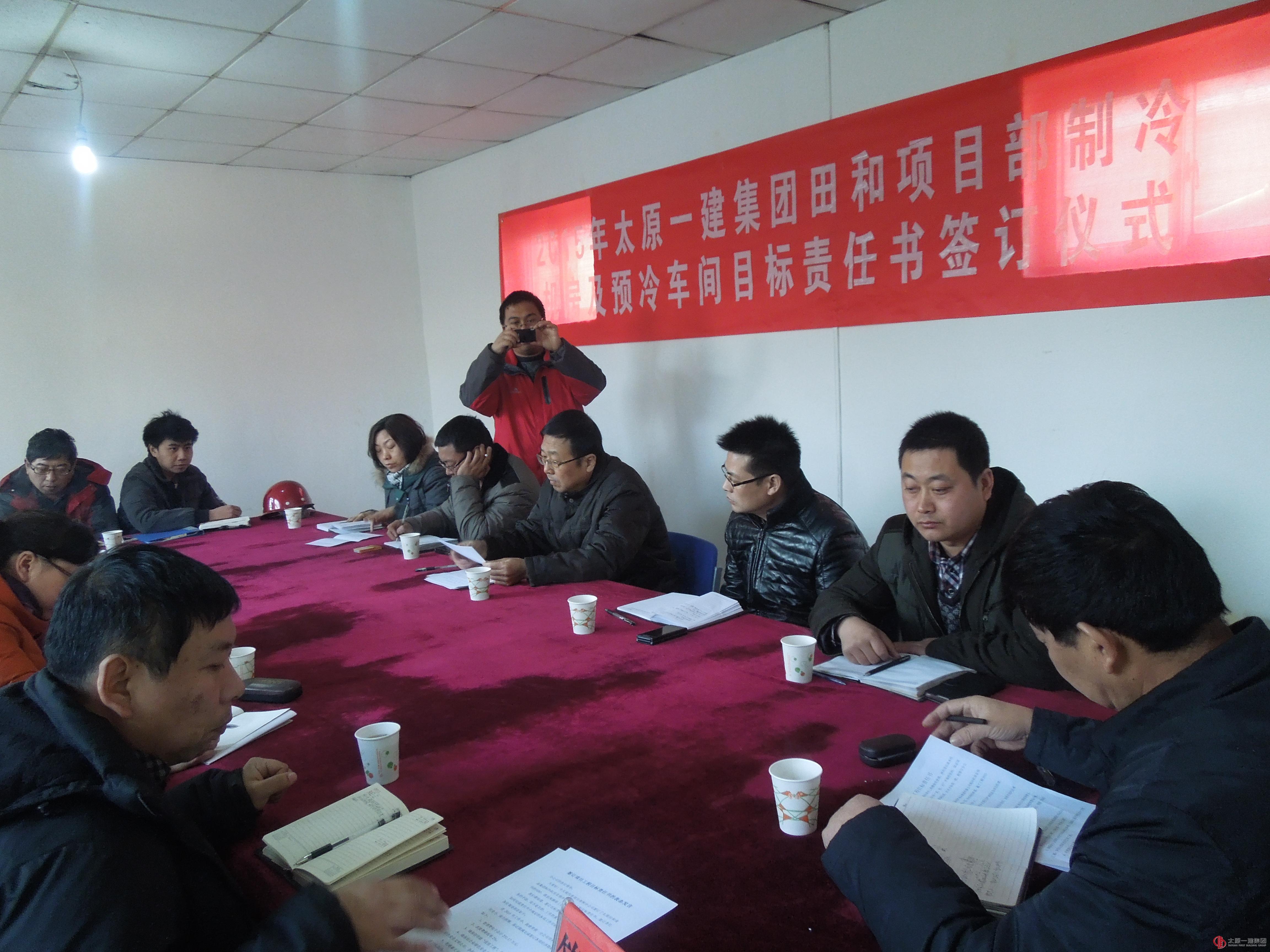 为了提升精细化管理,充分调动项目管理人员的工作能动性,圆满完成预期的各项计划指标,最终实现企业效益和个人收入双赢的目的。一分公司打破原有的作法,在项目管理上本着成熟一个签订一个的办法,于元月30日下午,在太原田和食品有限公司制冷机房和预冷车间项目部,进行了2015年度目标责任书签订仪式。分公司班子成员、施工技术科科长、项目部全体成员参加会议,高彩英主持了会议。主要内容:一、主任会计师赵人瑞宣解目标责任书内容;二、分公司与项目经理签订责任书;三、分公司班子成员分别对项目部提出建设性意见;四、经理张玉喜从精细化管理、企业品质提升、项目内部管理、职工收入等方面进行了讲解,同时对项目部提出了殷切的希望。