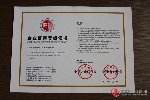 集团公司被中国企业联合会、中国企业家协会评为2015年至2018年的AAA级信用企业!