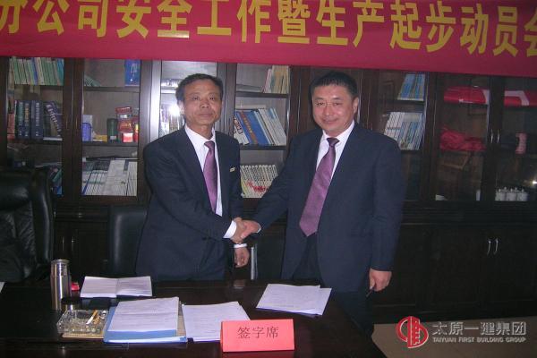 3、副经理刘宪玲全文宣读了董事长王贵聪在春节上班第一天机关干部见面会上的“爱企业、有作为、守纪律、懂规矩”的讲话和设备分公司安全目标责任书,并由分公司负责人与机械租赁站负责人、钢结构厂厂长和项目部签订安全生产目标责任书。