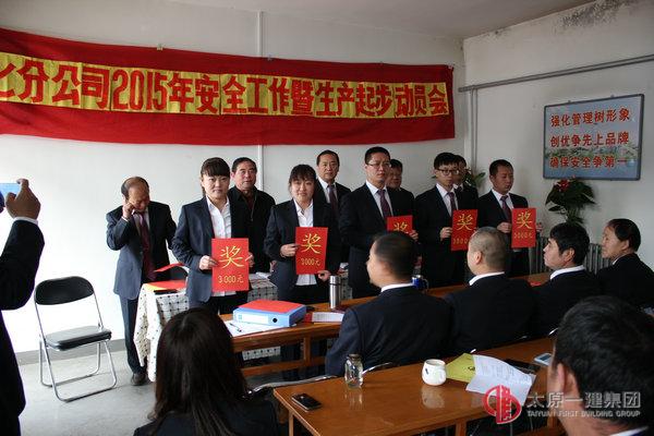 会议主要内容有:1、全员重温企业安全誓词 2、主任工程师王福做安全和技术工作发言 3、生产副经理做动员发言 4、分公司副经理、项目经理、科室负责人递交责任书和责任状 5、对2014年荣获各项荣誉的项目部、个人予以奖励 6、经营副武志文做市场经营思路、项目部和科室工作的表态发言 7、经理郭建新做2014年小结暨2015年全面工作安排 8、集团公司领导王斌对我分公司此次召开的会议予以肯定,并分享了他对于安全法、建筑业营改增等最近热词的看法,并祝愿我分公司在新的一年里更上一层楼,为企业做更多的贡献,为员工做更多的事。