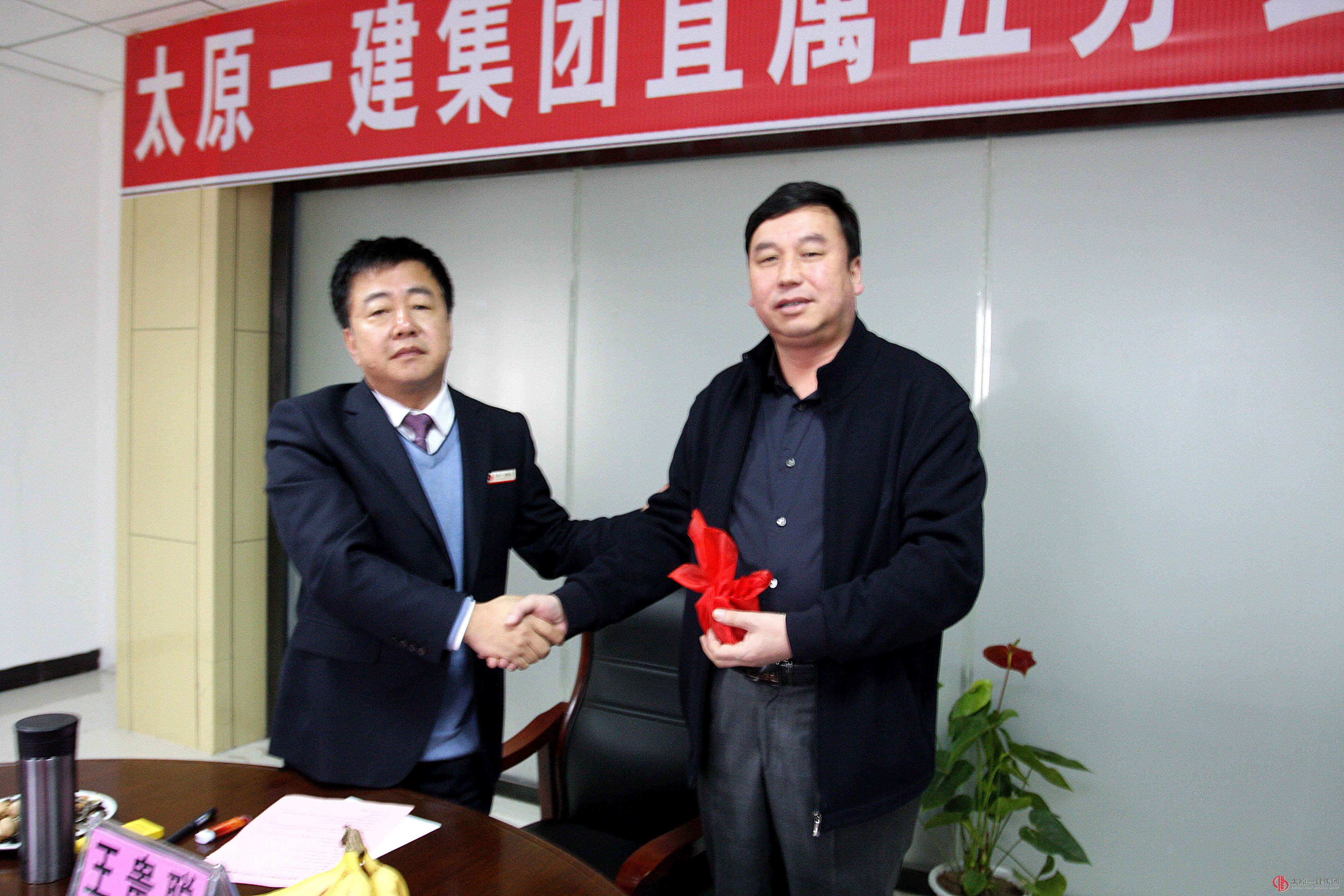 2015年4月1日,是个吉祥喜庆的日子。太原一建集团直属五分公司举行揭牌仪式,出席直属分公司揭牌仪式的有:集团公司董事长党委书记总经理王贵聪、董事总工程师路志旭、董事总会计师赵晨辉、监事会主席人力资源部部长范立强、董事会总经理办主任任秀山、行政保卫部副部长张浩、党群工作部干事梁超,直属五分公司经理李虎旺、常务副经理郭建军、副经理康利明、张俊林、主任会计师马改莲及全体管理人员参加了揭牌仪式,总工程师路志旭主持仪式。主要议程有:一是范立强宣读了集团公司组建直属五分公司及人员聘任文件;二是王贵聪向直属五分公司李虎旺授印;三是赵晨辉宣读2015年授权经营目标责任书,王贵聪、李虎旺分别在授权经营目标责任书上签字;四是直属五分公司经理李虎旺作表态发言:今天,我们非常荣幸地成为太原一建集团公司大家庭的一个成员,直属五分公司一定不辜负集团公司领导的希望,在今后的工作中,努力弘扬集团公司“家”文化理念和“诚·和”核心价值观,把直属五分公司这个小家庭建设好;努力按照集团公司的各项管理制度和标准,规范管理,严格要求,不断提高直属五分公司管理水平和全体员工的业务技能素质;努力开拓市场,积极承揽任务,加强安全生产,确保安全生产无事故,不断提高工程质量,增强工程质量终身负责制意识,加强现场文明施工管理,树立集团公司的良好形象,总之,直属五分公司一定要为集团公司的更好发展,和谐发展,增光添彩,做出贡献。五是集团公司董事长党委书记总经理王贵聪作重要讲话:首先,代表集团公司全体领导和1200余名员工欢迎加入集团公司大家庭并表示祝贺!借此,对直属五分公司提以下几点要求和希望:一是要真诚地合作。要大力弘扬企业“家”文化理念,以“诚·和”核心价值观和“家”文化理念,真诚合作,要先做好人再做好事,实现双赢的目标,共同携手为集团公司创新发展,跨越发展,和谐发展,全面发展做出直属五分公司的贡献。二是要守法地经营。在生产经营和各项管理工作中要牢记三条,①永远听党和政府的话;②永远遵纪守法地经营;③永远关爱职工。三是要不断地提升管理水平,不断提高经营质量。在生产经营和企业管理工作中要认识到我们自身存在的差距和不足,要学他人之长,补自己之短,管理是永恒的主题,工作中把“爱企业、有作为、守纪律、懂规矩”的教育活动扎实开展下去,并体现在安全生产、工程质量、文明现场施工和经济效益的提升等各个方面,这是最终的出发点和落脚点。四是要希望直属五分公司传承好集团公司“诚·和”核心价值观和“家”文化理念,在宁武乃至忻州地区扩大集团公司影响,树立好集团公司形象,为集团公司的不断发展做出积极的贡献。最后:集团公司董事长党委书记总经理王贵聪与直属五分公司经理李虎旺在喜庆的鞭炮声和热烈的掌声中共同为直属五分公司揭牌并合影留念。