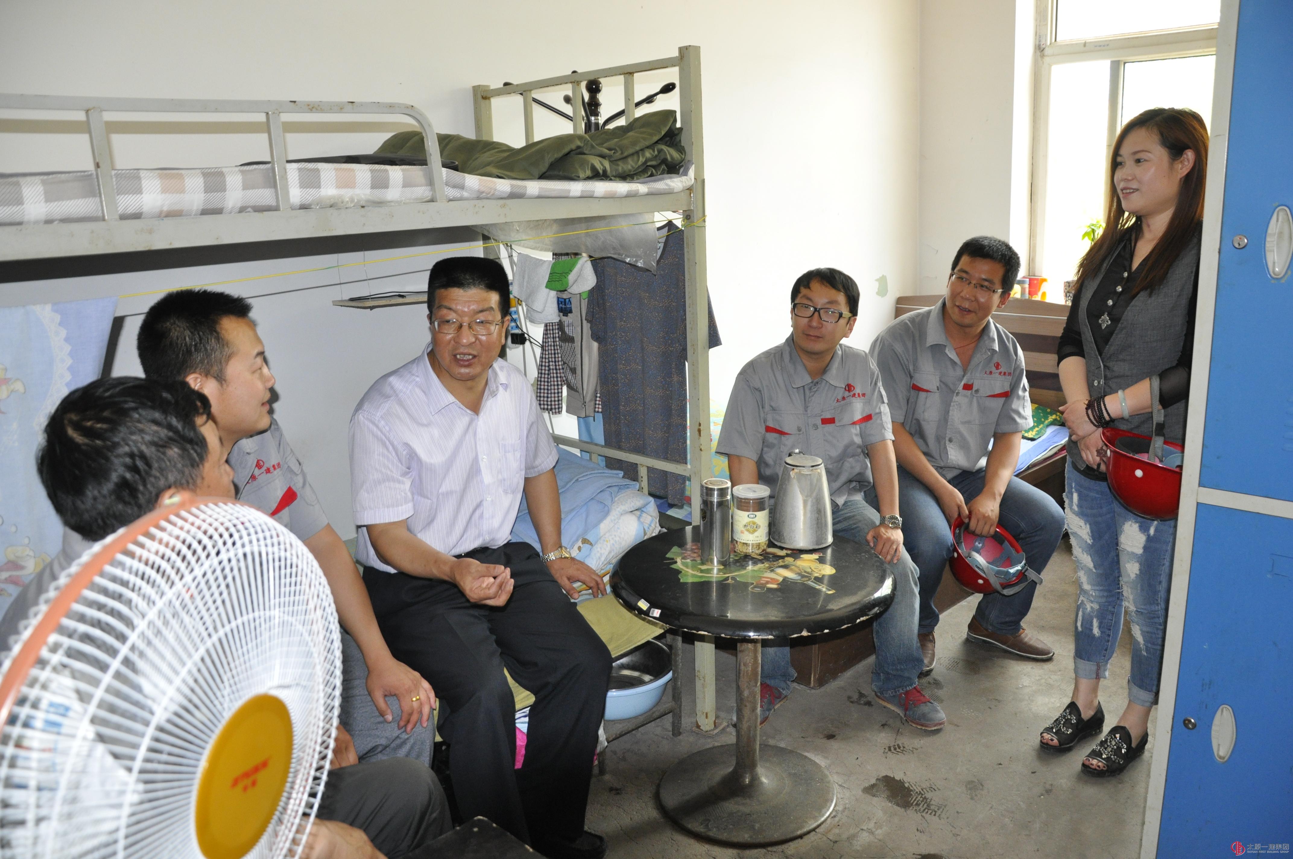 宋双玉在十三分公司关帝山林管局工地员工宿舍与员工交谈
