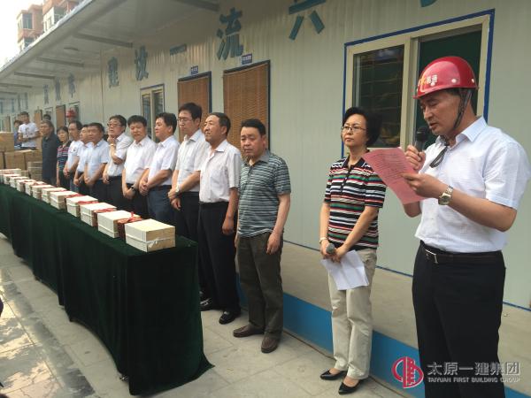 6月17日下午,太原市总工会“农民工入会集中行动” 暨夏季“送清凉”慰问活动在二十七中学校新建项目隆重举行。活动由太原市总工会副主席郎学军主持,参加活动的有市人大副主任、市总工会主席冯晋生、市住建委调研员强力军、集团公司董事长、总经理王贵聪等领导,易通劳务公司承办了本次活动。首先,太原市入并建筑企业工会联合会主席陈敏就“农民工入会”发表了讲话。二、易通劳务公司总经理李伟就农民工入会工作作了表态发言。三、易通劳务公司工会会员代表邓睿星带领农民工进行了入会宣誓。四、冯主席、王董事长等领导把会员证、西瓜、白糖、毛巾等慰问品亲手送到了农民工手中,对大家进行了慰问。领导们还兴致勃勃的参观了工人生活区,对现场管理给予了高度评价。270名农民工集中入会,“回到娘家”把入会的感动化作爱岗敬业,干好工作的行动。二十七中学校新建项目农民工集中入会、慰问活动是市总工会对企业劳务管理工作的认可,使农民工真切感受到“家”的关心关爱,激发了大家的荣誉意识、责任意识,调动了生产积极性,为集团公司的施工生产再立新功。
