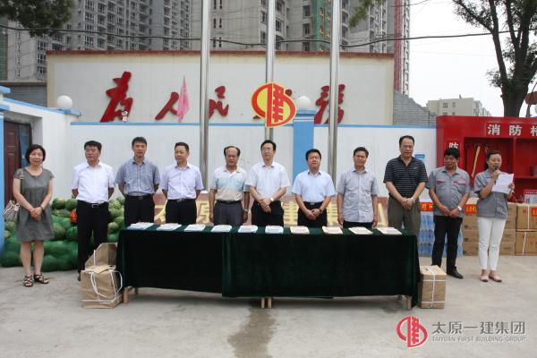 高温酷暑,烈日炎炎,7月10日上午太原市总工会慰问农民工活动在我分公司承建的田和食品集团制冷机房及预冷车间项目部举行,太原市总工会常务副主席范晓高、宣教部部长邹江等领导,带着水果、绿豆、矿泉水、毛巾、洗衣粉等慰问品来到施工现场亲切慰问了辛勤工作的广大农民工兄弟。活动第一项由田和项目部技术负责人朱蕊对工程情况进行简要的介绍。第二项由市总工会范主席为大家讲话,他强调大家一定要注意防暑,认真学习职工维权手册,并为大家送上问候和祝福。第三项由各位领导向大家发放慰问品。集团公司党委书记董事长总经理王贵聪、工会主席李瑞琪,建设单位田和食品集团公司书记王向兵、工会主席冯增喜、副总刘浩明,分公司领导班子全体成员及项目部全体员工参加了此次活动。活动由分公司工会主席高彩英主持。