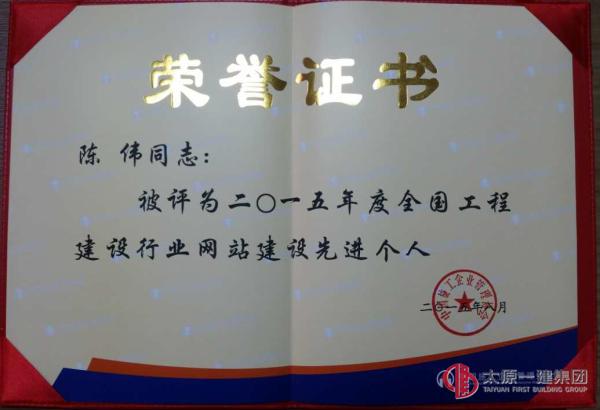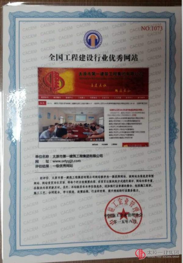 会议对“全国工程建设行业优秀网站”和“网站建设先进个人”进行表彰及颁奖。集团公司被评为二〇一五年度全国工程建设行业一级优秀网站,网站管理员陈伟被评为二〇一五年度全国工程建设行业网站建设先进个人,中国施工企业协会并对集团公司网站出具了评估报告;“经评估,太原市第一建筑工程集团有限公司网站被评为一级优秀网站,该网站为信息发布型网站,网站首页为长页面,将每个栏目的重要内容,在首页以版块的方式进行展示,网站内容丰富,各版块内容更新及时。另外,本站除发布本单位信息外,还加强行业资源的整合,包括施工组织、施工工艺、合同范本、学习深造、政策法规、行业研究等,提升网站的行业服务能力”。本次评估共调研了2663家工程建设企业,从1400多家有门户网站的企业中评选了一级优秀企业网站100家,二级优秀企业网站200家,三级优秀企业网站300家。分五个专家组进行评选,最后对评选结果进行综合,得出优秀网站名单。