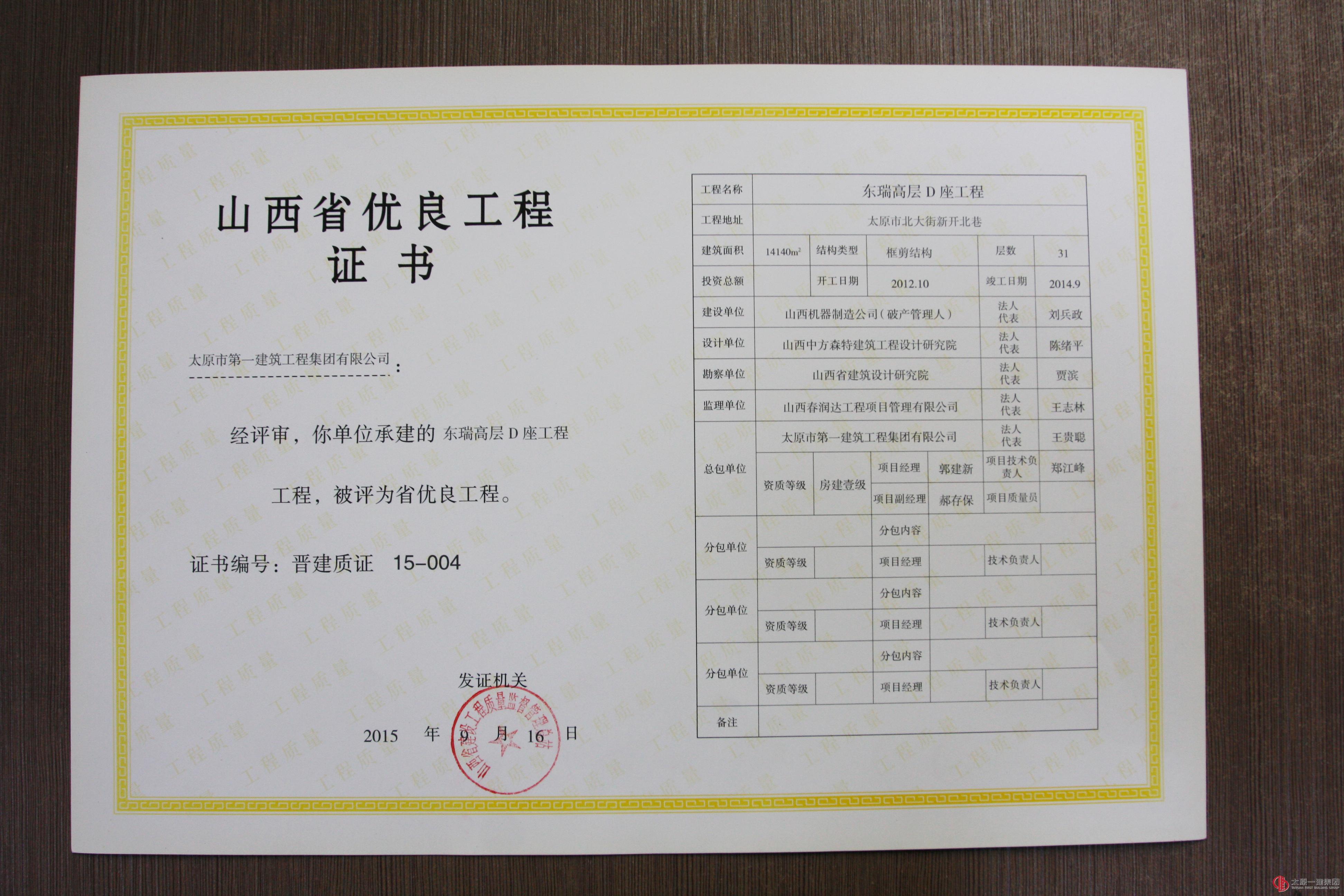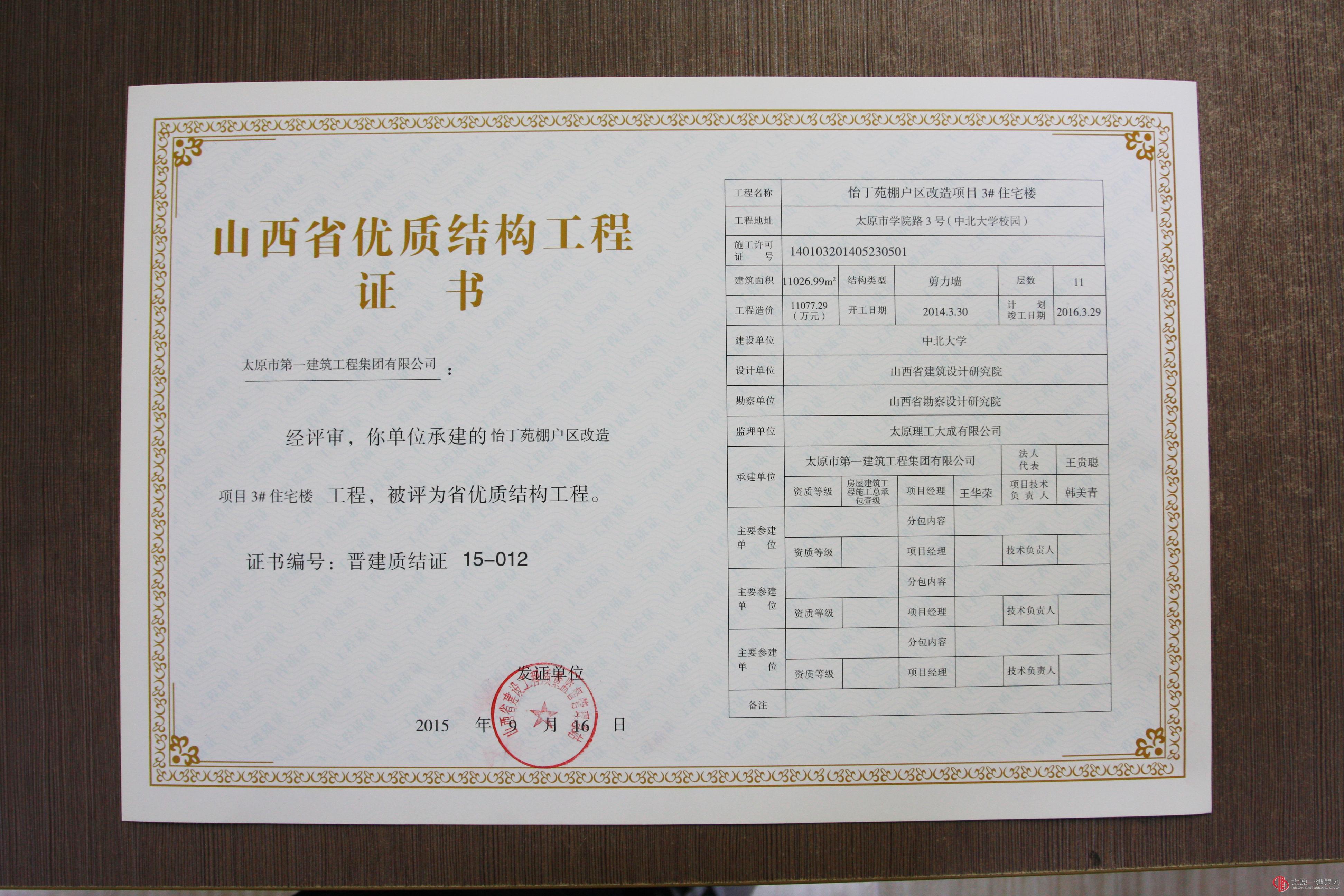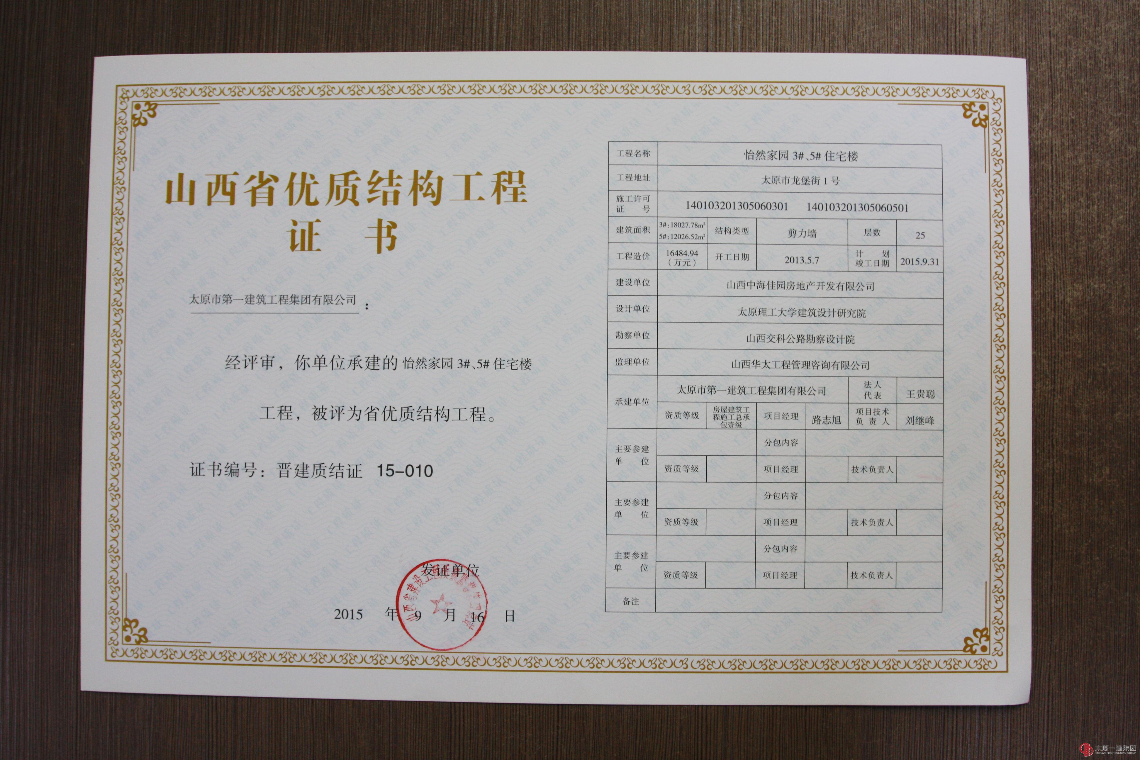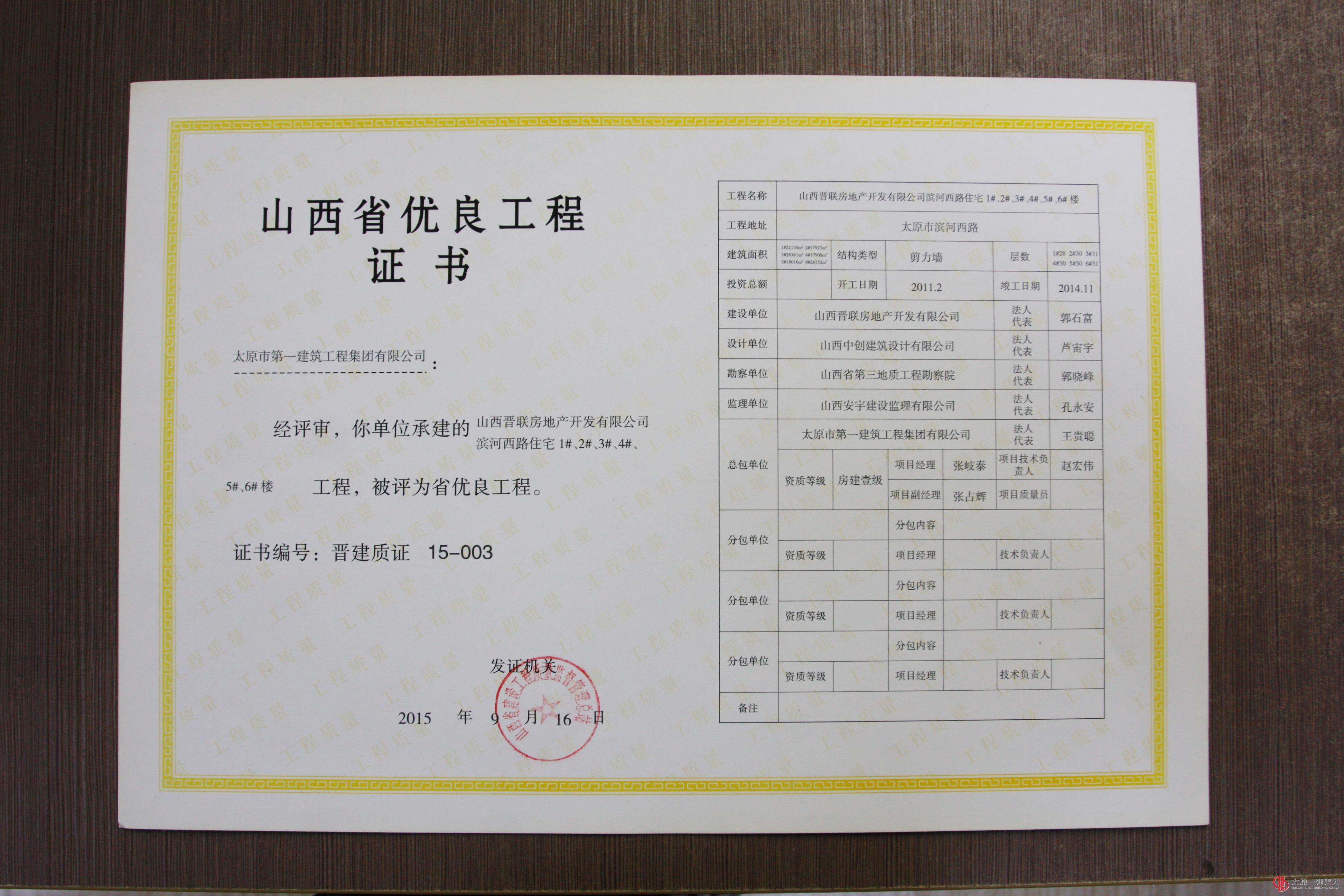 集团公司十三项工程分别荣获山西省优良、结构优质、绿色施工工程称号