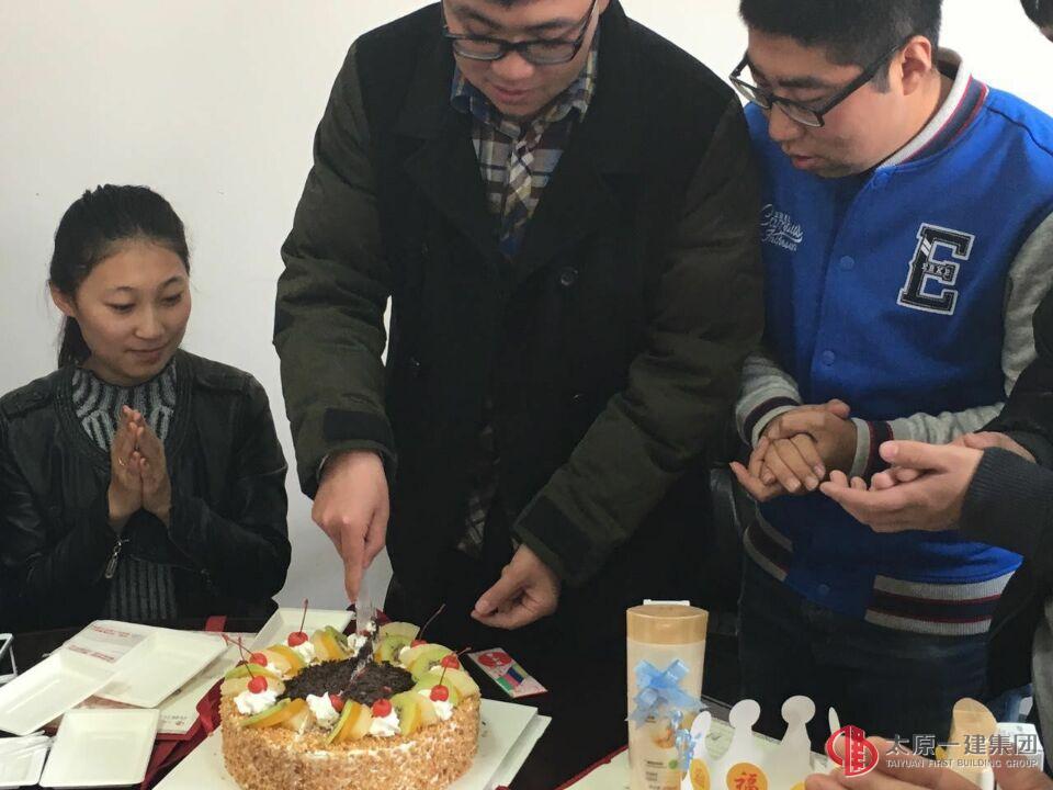 分公司的发展离不开每位员工的辛勤的努力与付出。为了营造温馨、和谐的工作环境和氛围,充分体现太原一建集团公司的“家”文化,让每位员工都能切实感受到大家庭的温暖,有“家”的感觉。11月14日在直属分公司会议室、唐久总部大楼项目部,分公司领导与11月份过生日的员工一起聚会,给“寿星们”送上生日礼物、生日蛋糕、生日贺卡。在分公司领导的人文关怀下,组织了寿星们参加此次生日聚会。生日聚会上,大家一起分享生日蛋糕,其乐融融。分公司经理郭贵法向职工送上浓浓的生日的祝福,对员工长期以来的辛勤工作给予了肯定和感谢,以实际行动传递好集团公司“家”文化的理念。