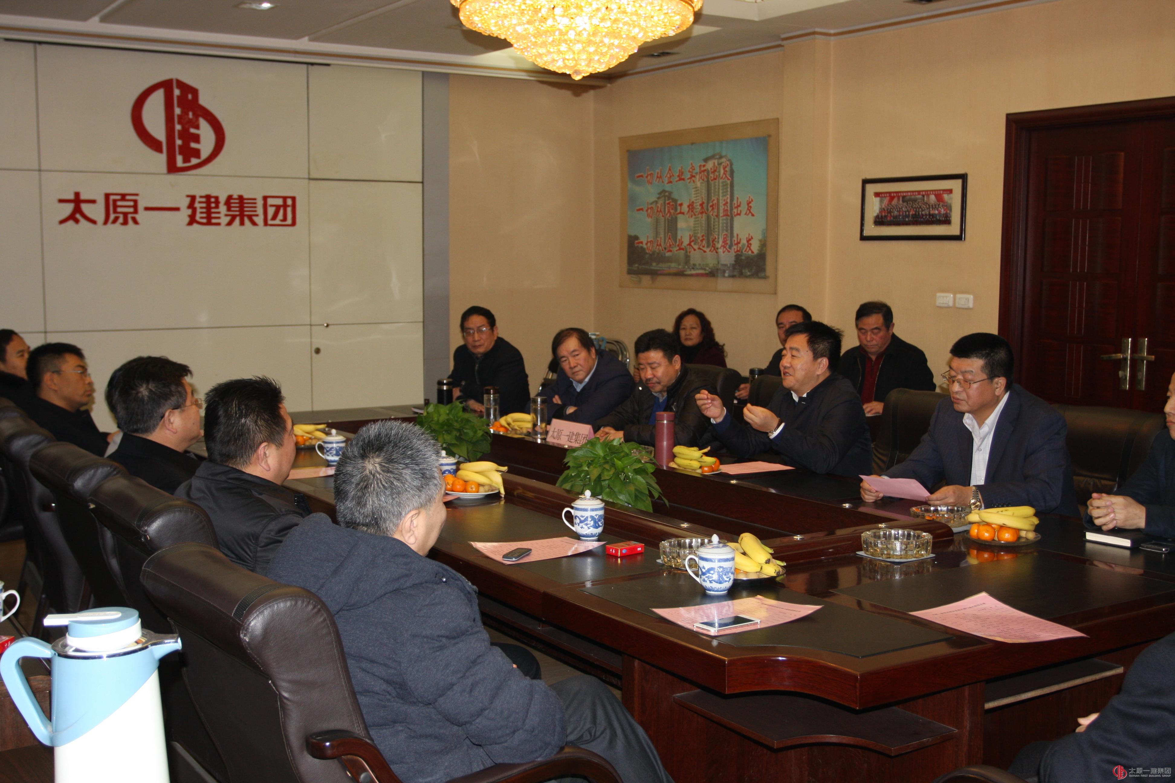 12月30日下午,太原市政工程总公司总经理张平国、党委书记吉云平、副书记闫水平、副总经理石文宪、樊建中、丁晓嵘、尹钥、总经济师张东浩、总工程师郝东辉、总会计师孙东潮、工会主席冯忠、办公室主任任跃中一行前来集团公司座谈交流学习。集团公司领导王贵聪、宋双玉、张岐泰、王斌、李世雄、刘洁、赵琦、李伟、赵晨辉、王建萍、陈斌、范立强、李瑞琪、办公室主任任秀山、市政分公司(二分公司)领导刘海飞、孙庆福等参加了座谈交流。集团公司董事长、党委书记、总经理王贵聪讲话:2015年即将结束,在这辞旧迎新之际,市政总公司领导前来我公司座谈交流,这是我们向市政总公司学习的极好机会,我代表太原一建集团全体领导和职工对市政总公司领导的光临指导表示热烈的欢迎。太原一建集团公司与市政工程总公司两个兄弟单位有着深厚的历史渊源,通过这次学习交流两个兄弟单位将会进一步增进友谊、加深交往、互相支持。接着,王贵聪从集团公司的基本情况、生产经营、企业管理、企业“家”文化建设、队伍建设等方面向市政总公司的领导作了介绍。市政工程总公司总经理张平国讲话:感谢太原一建集团公司领导的热情接待,太原一建集团无论从班子建设、企业管理、经营业绩、企业文化、队伍素质、环境建设、企业精神面貌等各方面都值得我们学习。最后,两个单位的领导表示:在今后的工作中将进一步加强合作交流,结伴而行,实现互利双赢,为太原市的城市建设和经济发展做出贡献。