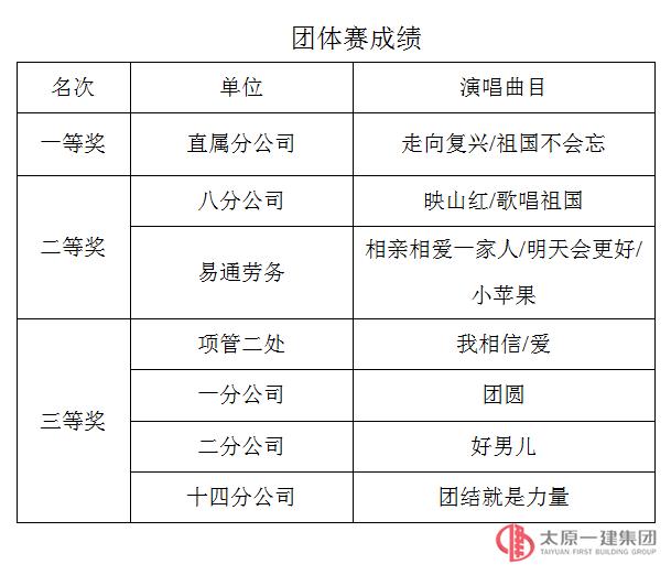 团体三等奖:二分公司、十四分公司、项管二处、一分公司