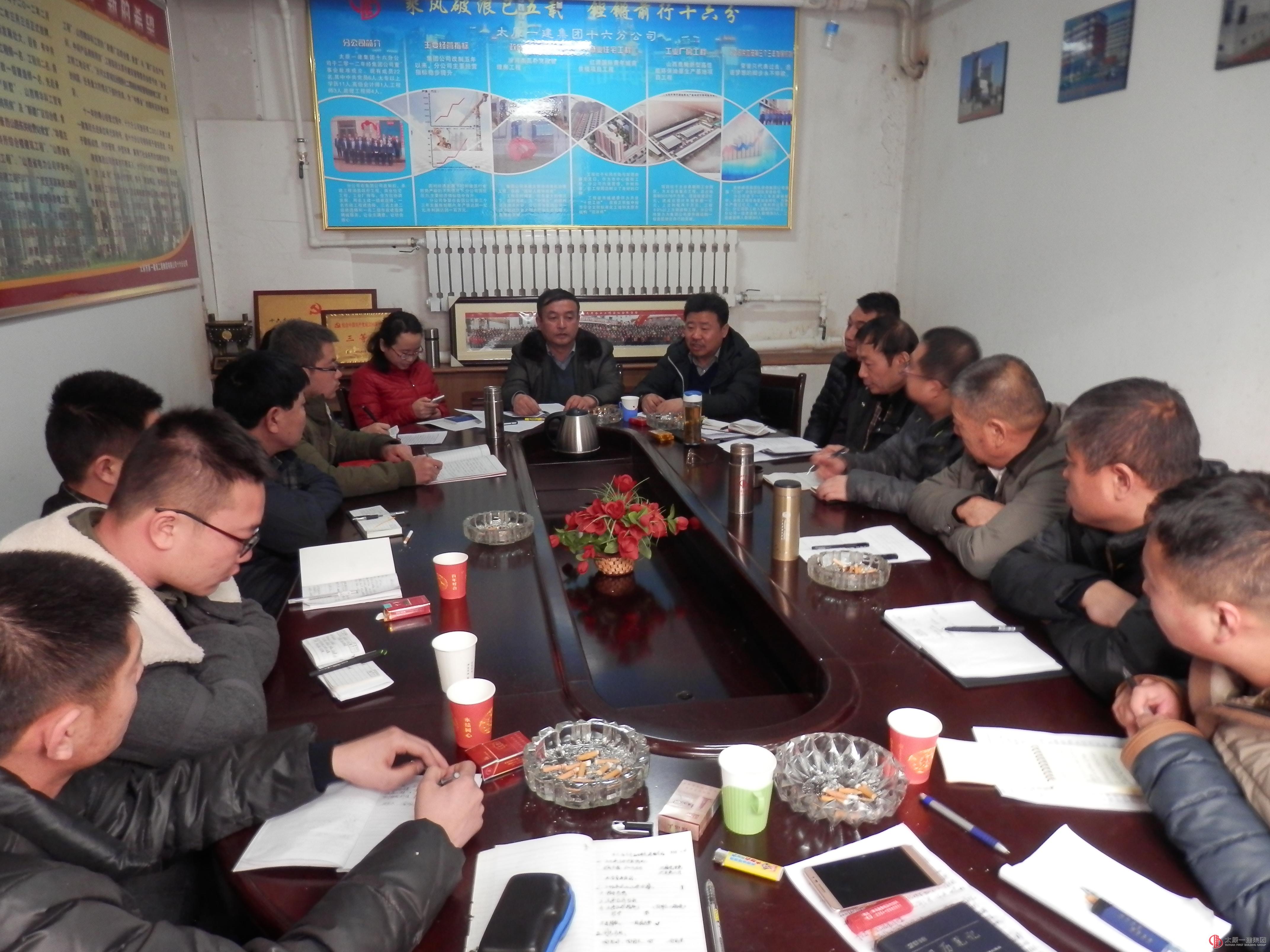 2月4日十六分公司组织召开全体员工会议,集团公司副总经理刘洁参加会议。会议首先由副经理武林峰全文传达了《2016年企业工作安排》;二、分公司书记、经理芦新海通报了2015年各项经济技术指标完成情况及2016年工作计划;三、全体管理人员做2015年个人工作总结报告,书记、经理芦新海逐一进行了点评,提出了要求和今后努力方向;四、根据每位职工一年来的工作表现发放了奖金;对刘永杰取得一级建筑建造师、市政建造师给予表扬和2万元的奖励;五、集团公司副总经理刘洁讲话:1、对十六分公司2015年工作的给与了肯定,对所取得成绩表示祝贺,希望再接再厉;2、根据分公司的发展提出几点要求:一要建制要全,要符合企业要求,做到全面发展;二要创品牌工程,提升形象;三要善于总结,不断提炼经验,理顺业务流程,形成制度推动各项工作;三点希望:一是利用好平台,加强学习,尽快提升自身水平;二是希望在新的一年创出优良工程、创出好的业绩;三是在全面管理上上一个新的台阶。最后,党支部书记、经理芦新海要求:在新的一年里,发扬成绩、纠正不足、群策群力、克服困难、奋发向上、携手同行、上下一心,为圆满完成2016年的各项工作任务而努力奋斗!会议由经理芦新海主持。