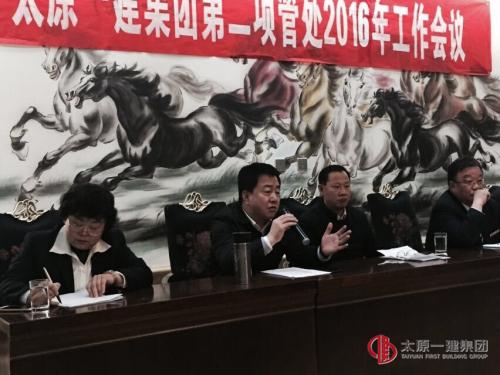 3月3日上午,项管二处召开2016年工作安排暨生产起步动员会,参会人员有:项管二处班子成员、各工程部主任及部分项目经理、青年职工代表,共计35人,集团公司董事长王贵聪、总经理李世雄应邀参加了会议。会议议程: