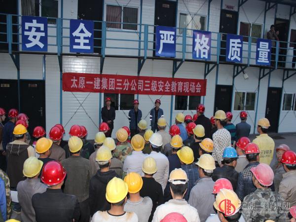 由太原一建集团三分公司承建的吕梁市方山县大武镇城市棚户区改造永安苑安置区项目,2016年4月13日利用晚上休息时间,对现场所有施工人员进行了三级安全教育,项目部全体管理人员及劳务作业班组150余人参加了此项活动。