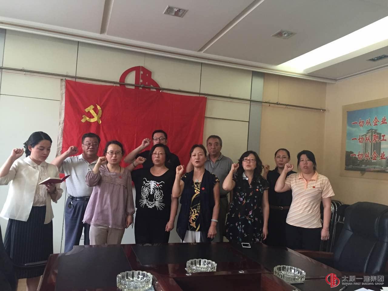 一、由组织委员王丽莺带领全体党员佩戴党徽在党旗下进行宣誓,重温入党誓词。