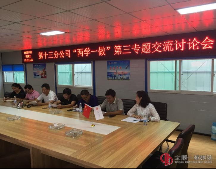 8月31日下午3:00,第十三分公司党支部“两学一做”第三专题:“讲道德 有品行”交流讨论会在分公司承建的省委党校项目部召开,会议由支部副书记任伟娟同志主持。