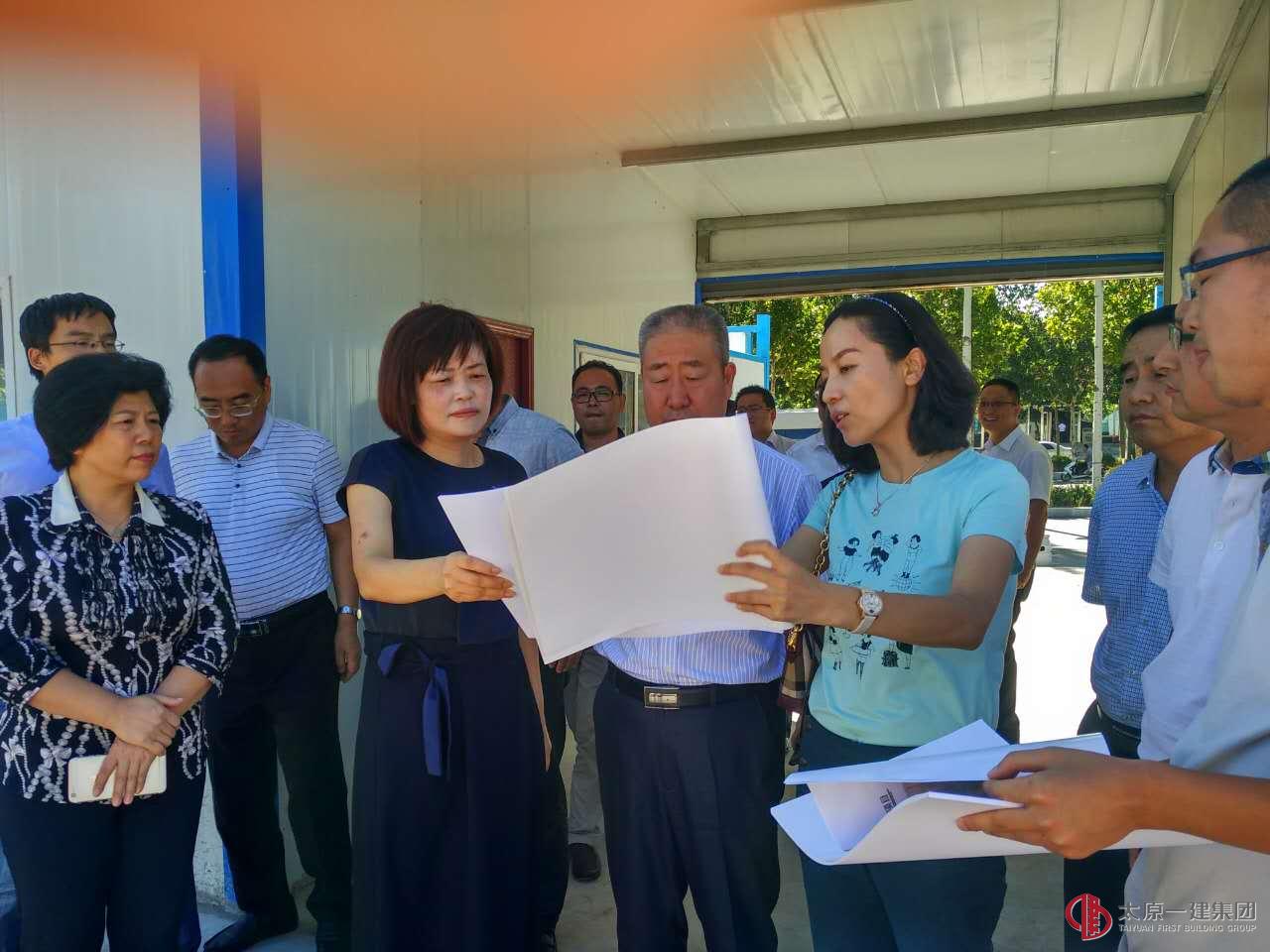 2016年9月1日下午,晋城市城区区长王文全、常务副区长王丽、副区长连陆军和王东升、钟家庄街道办事处主任陈志刚、甲方蔡总等领导莅临我直属三分公司承建的晋城瑜园老年公寓项目工地视察指导工作。