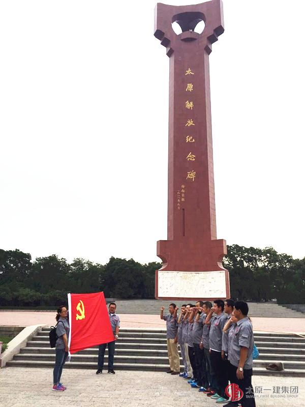 耸入云端的“解放太原纪念碑”,雄宏伟岸,碑凭山势,峰托宏碑,犹如中天一柱。钥匙般的造型,喻意这里是打开太原的“锁钥”。首先,全体党员在太原解放纪念碑下,面对鲜红的党旗重温入党誓词,庄严宣誓。其次,大家认真欣赏了园内的大型浮雕,一幅幅栩栩如生的浮雕形象而生动地再现了太原解放战役的全貌。陵园中的一草一木,似乎也在向人们诉说着先烈们的英雄事迹。最后,大家来到庙碉, 在它的周边,残破的壕沟、劈坡、地道依旧历历在目。庙碉的四壁上,弹坑累累,如今几十年的时间过去了,经历了风吹雨打,这座昔日的碉堡却仍然显得异常坚固。正是无数英雄用鲜血换来了我们今天美好的生活,他们所表现出的坚持革命、不畏艰险的英雄主义气概和为党为民英勇献身的精神永远值得我们尊敬和纪念。