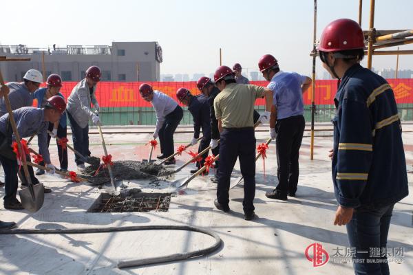 2016年9月23日,风和日丽,阳光明媚,在这收获的季节里,项目工程管理处承建的山西省心血管病医院门急诊综合楼顺利封顶。参加本次封顶仪式的有山西医科大学第二医院院长、原心血管病医院院长李保、心血管病医院纪委书记及基建办主任、总监理工程师和太原一建集团公司总经理李世雄、副总经理张岐泰及项管处处长李朝峰、项目执行经理等项目管理人员。他们共同为门急诊综合楼铲下了最后一铲混凝土,标志着心血管病医院门急诊综合楼顺利封顶。