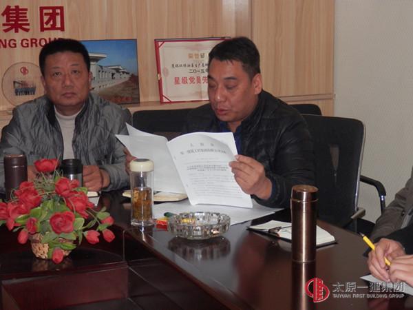 三、副经理武林峰宣读并一建经办发【2016】13号文件,关于认真汲取江西丰城电厂,11.24冷却塔施工平台坍塌特别重大事故教训,立即开展施工安全大检查的通知,要求大家真正提高安全生产意识;
