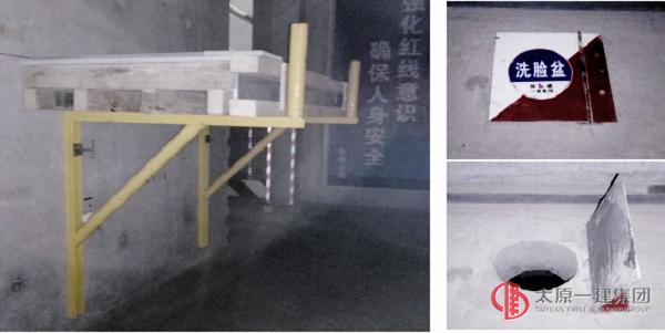 飘窗采用定型工具化支模体系既安全又高效;预留孔洞采用固定翻折钢板,既保证安全还可周转利用;