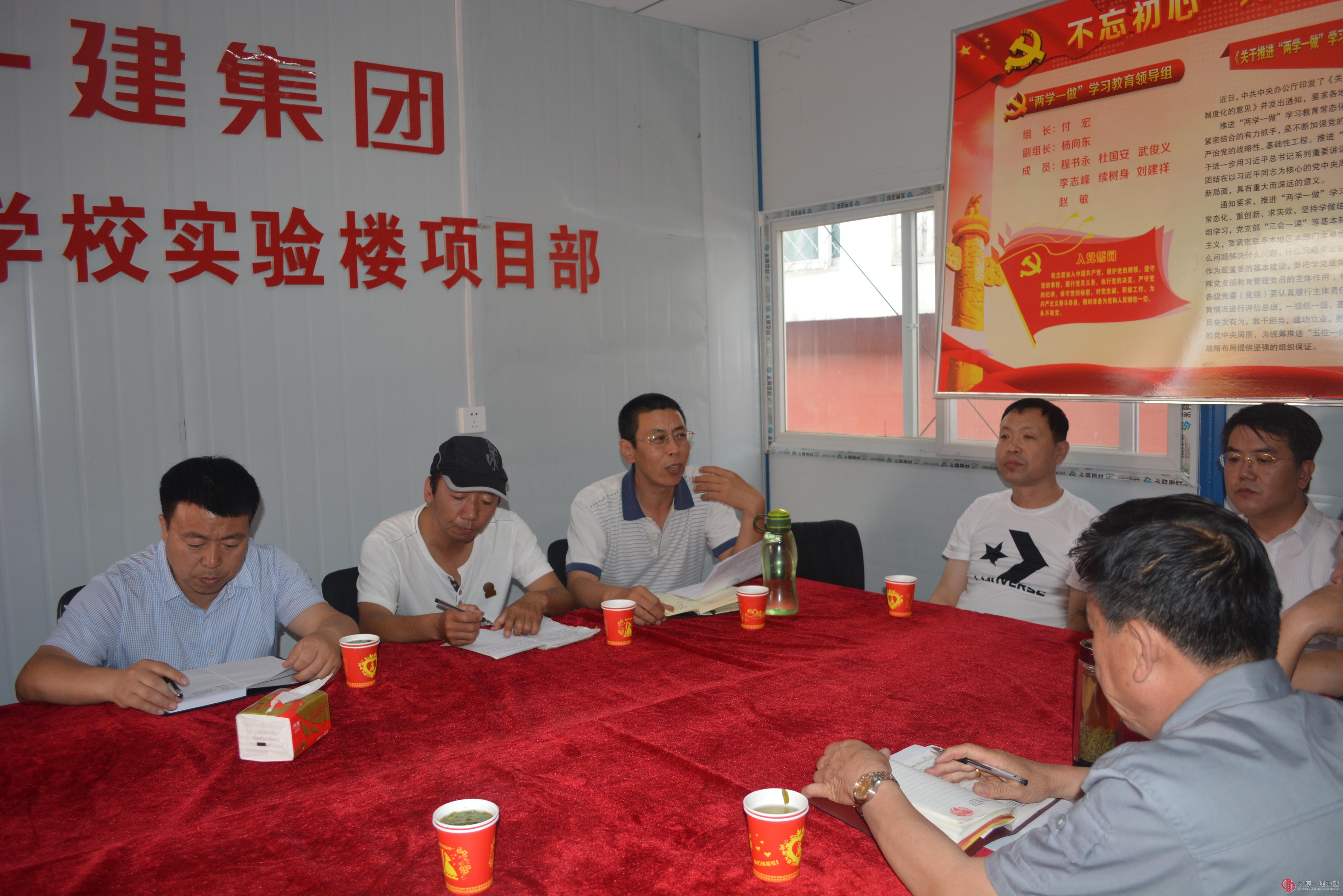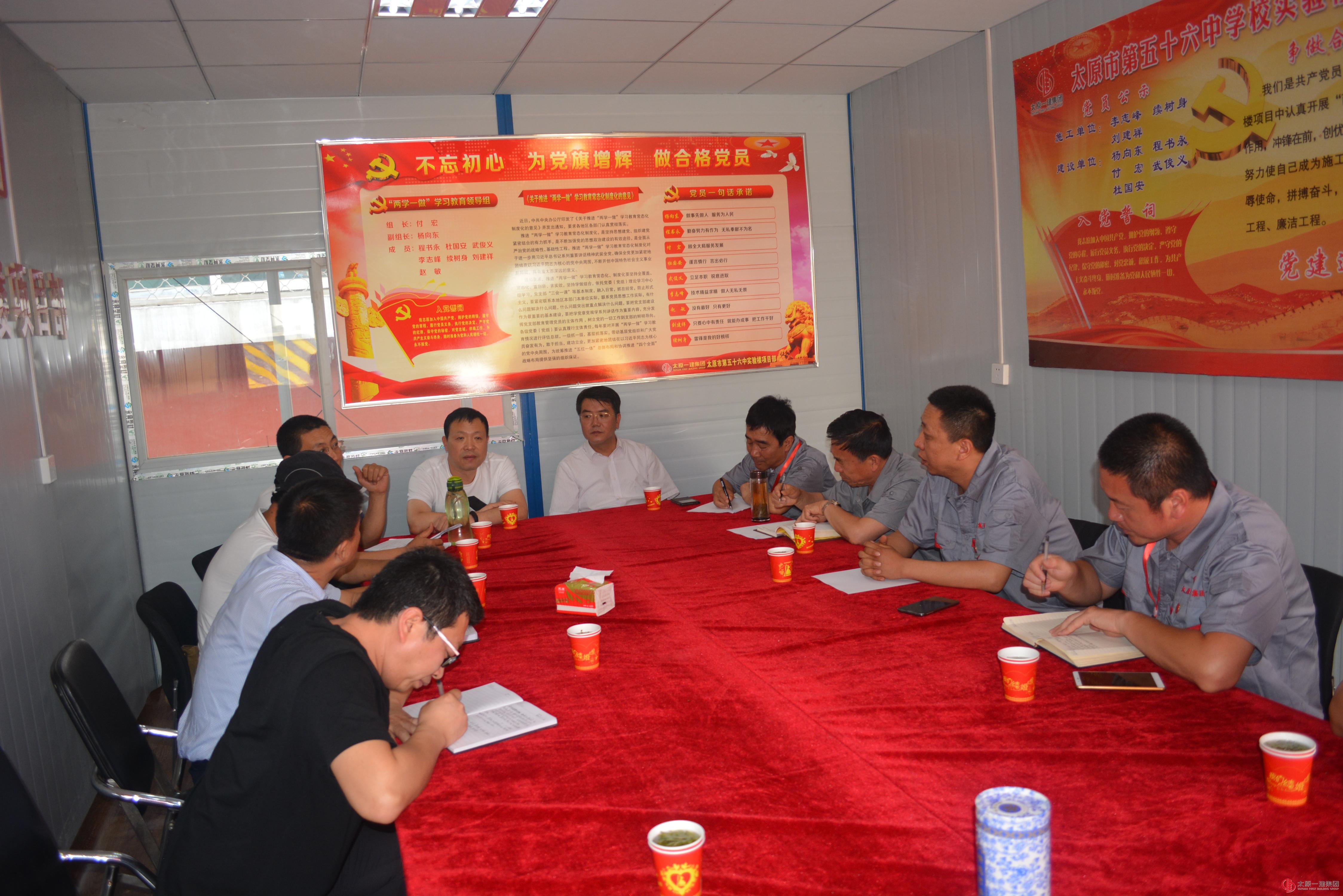 六分公司56中学实验楼项目联合党小组召开党建进工地,引领促发展“两学一做”学习教育会议
