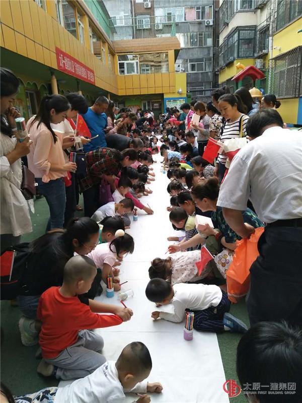 国旗的制作将小朋友对祖国的热爱之情渲染的淋漓尽致,而当十米画布铺展在小朋友眼前时,小朋友们像开心的小画家,迫不及待的拿起手中的画笔,或蹲、或爬,尽情的在画布上挥洒着对祖国妈妈的美好祝愿,祝愿亲爱的祖国妈妈68岁生日快乐!